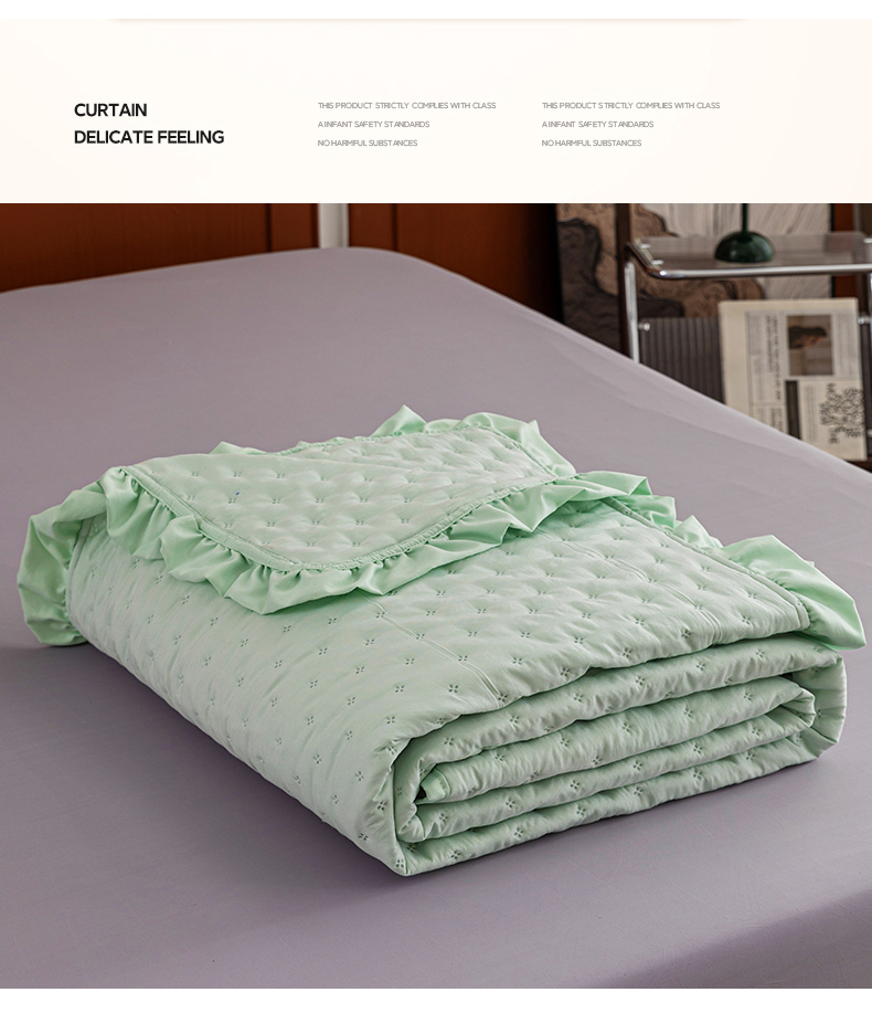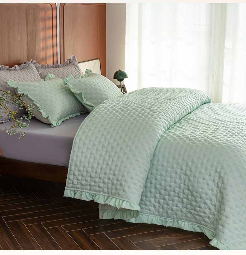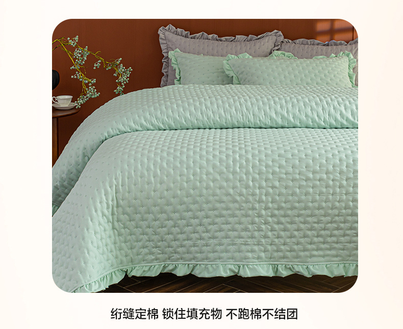 商品名称:恩和家纺 2025新款荷叶边款多功能绗缝被床盖-风格二 飞边浅青绿