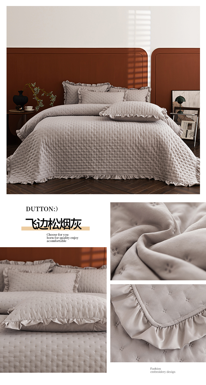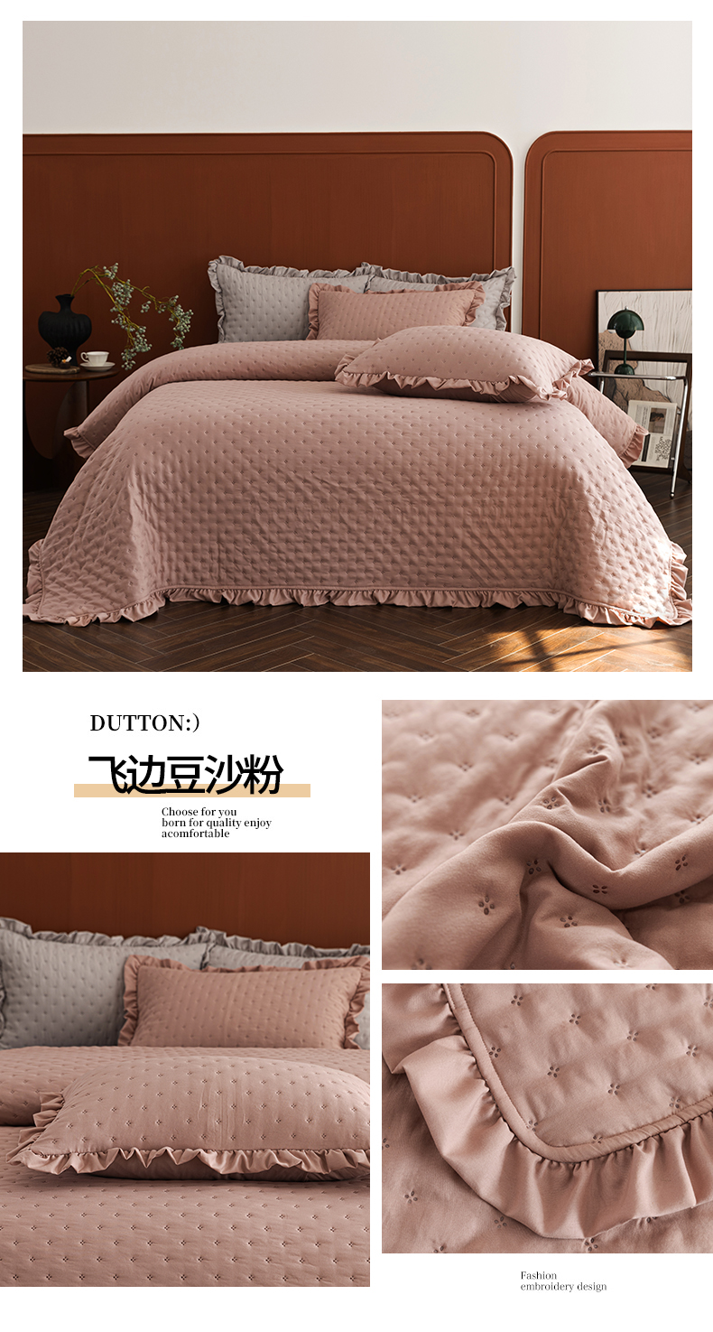 (总)恩和家纺 2025新款泡泡牛奶绒荷叶边款四件套,泡泡绒飞边咖色,泡泡绒飞边款豆沙,泡泡绒飞边款紫色,泡泡绒飞边米白咖,泡泡绒飞边深灰