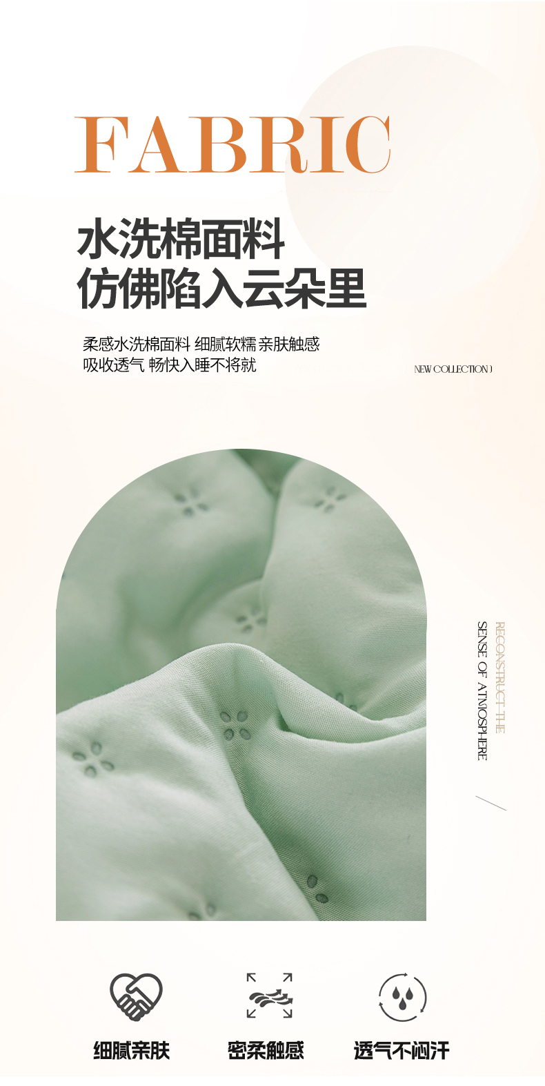 (总)恩和家纺 2025新款条纹立体泡泡纱亲肤棉四件套,藏蓝,纯白,淡烟紫,豆沙粉,米白,墨绿,深灰,深蓝