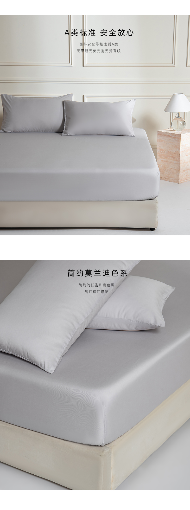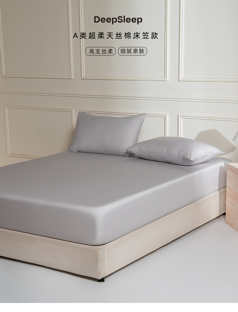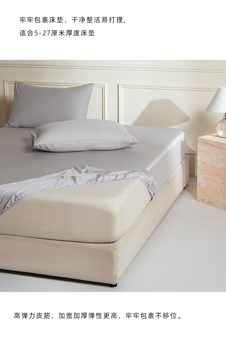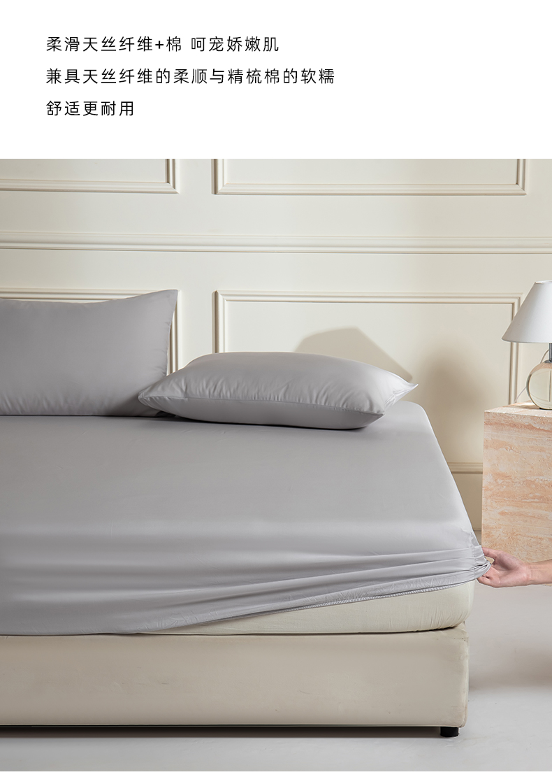 商品名称:Mr.pig猪先生水洗棉 2025新款A类超柔天丝棉纯色单床笠 朦胧灰