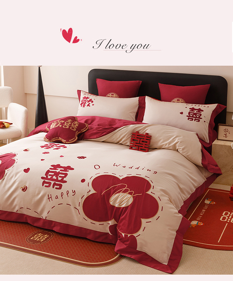 (总)甜咪咪婚庆 2025新款50支长绒棉全棉婚庆床单床盖四件套多件套刺绣工艺,洛可可,爱恋小熊,爱意久久,多子多福,花田喜事,节节高升,克拉恋人,浪漫情怀,怦然心动红,怦然心动玉,甜心玫瑰,温莎公主,伊甸园,醉红妆