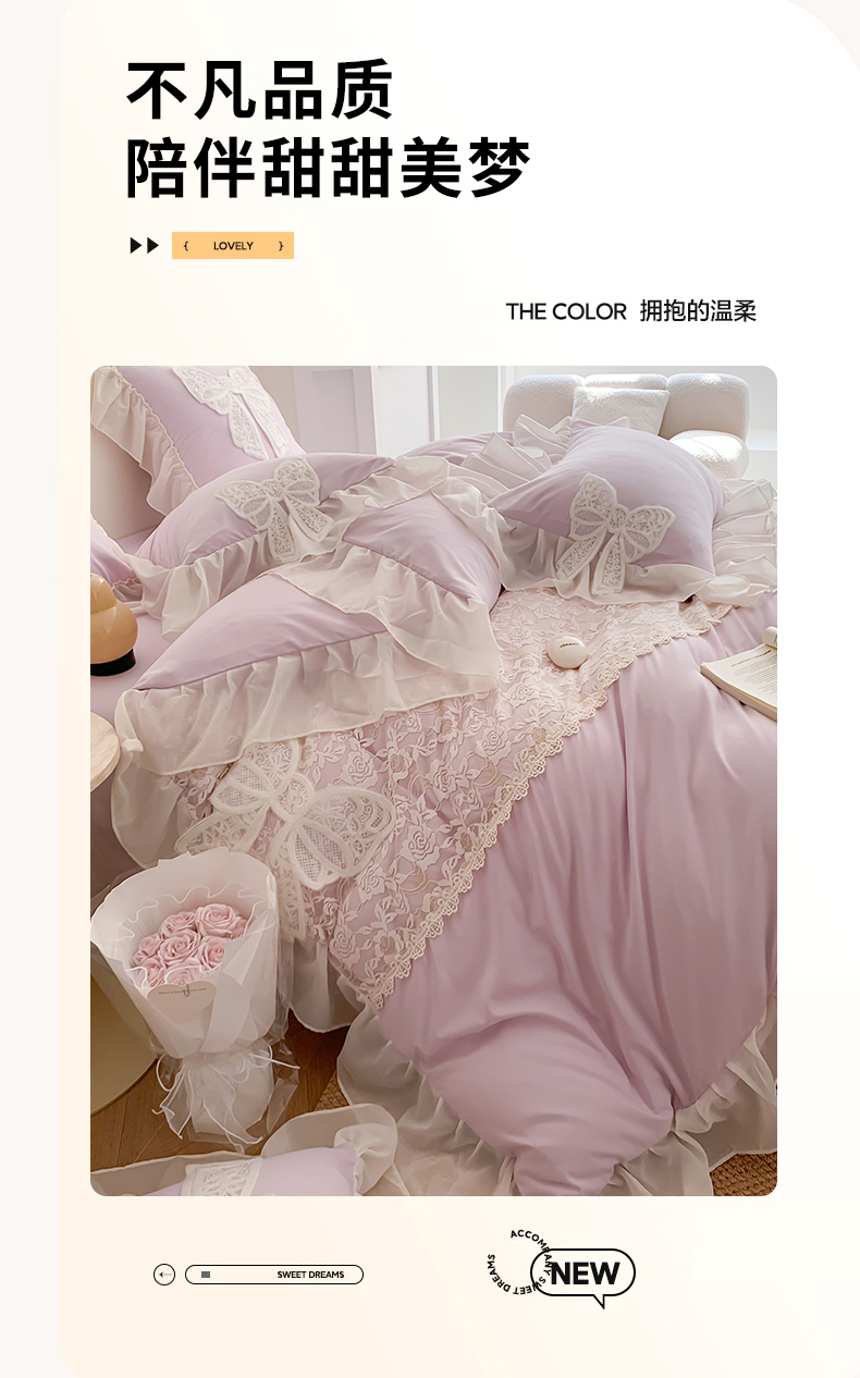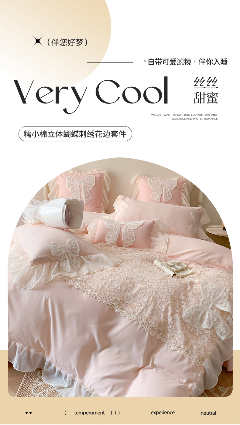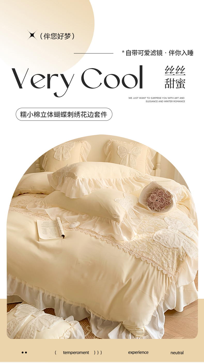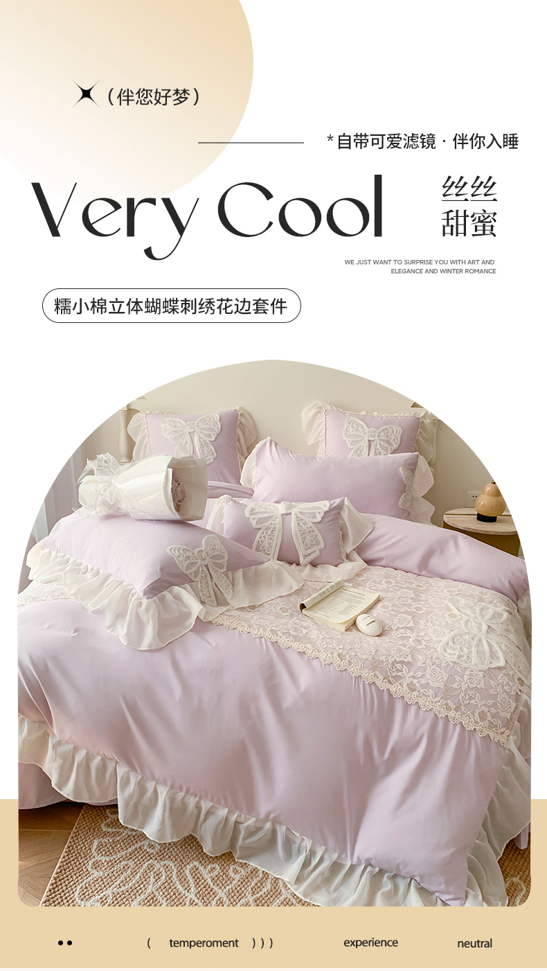 (总)吾欢心2025新款糯小棉立体蝴蝶刺绣花边套件