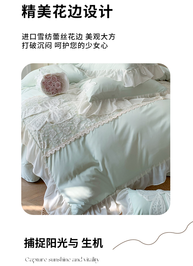 (总)吾欢心 2025新款公主风雪纺边四季通用夹棉床盖,床盖白,床盖粉,床盖黄,床盖咖,床盖绿,床盖抹茶绿,床盖紫
