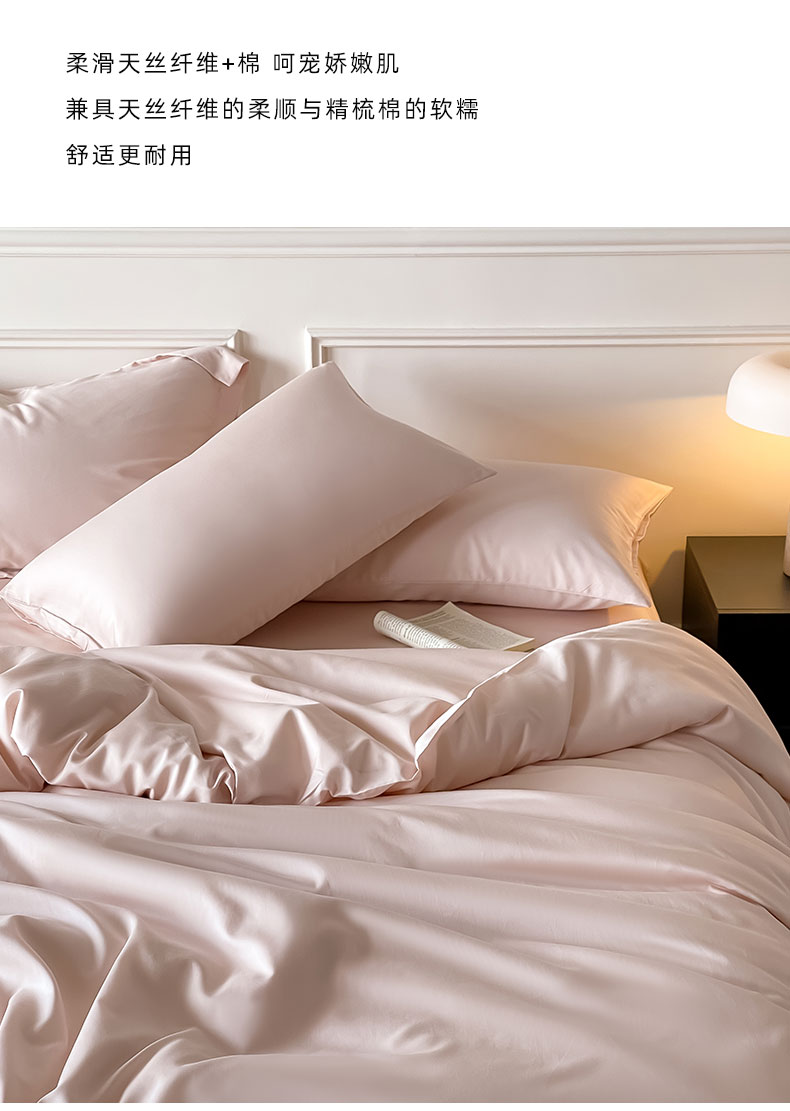 商品名称:Mr.pig猪先生水洗棉 2025新款A类柔软纯色天丝棉单被套 桃喜粉