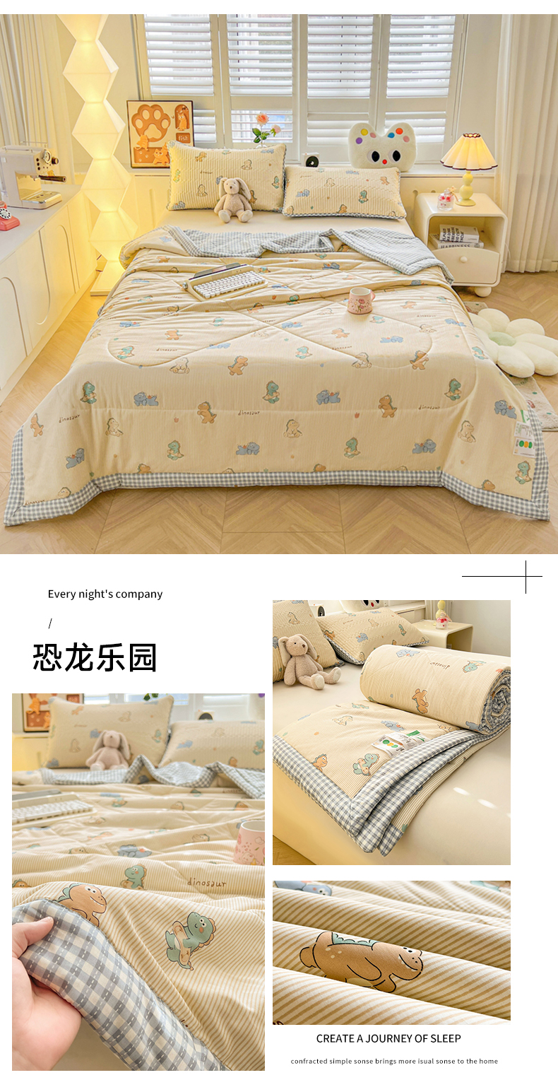 雅萱家纺 2025新款全棉夏被套件 恐龙乐园