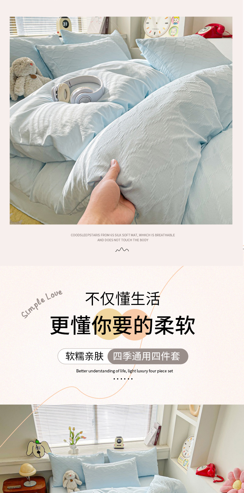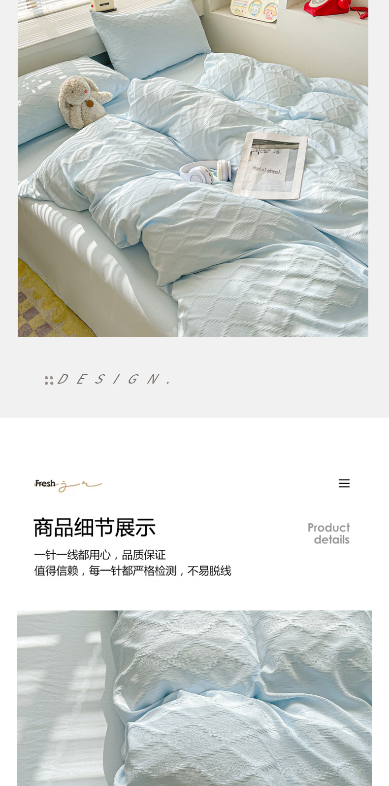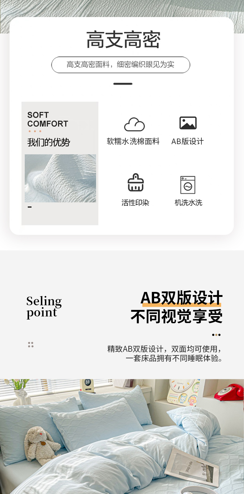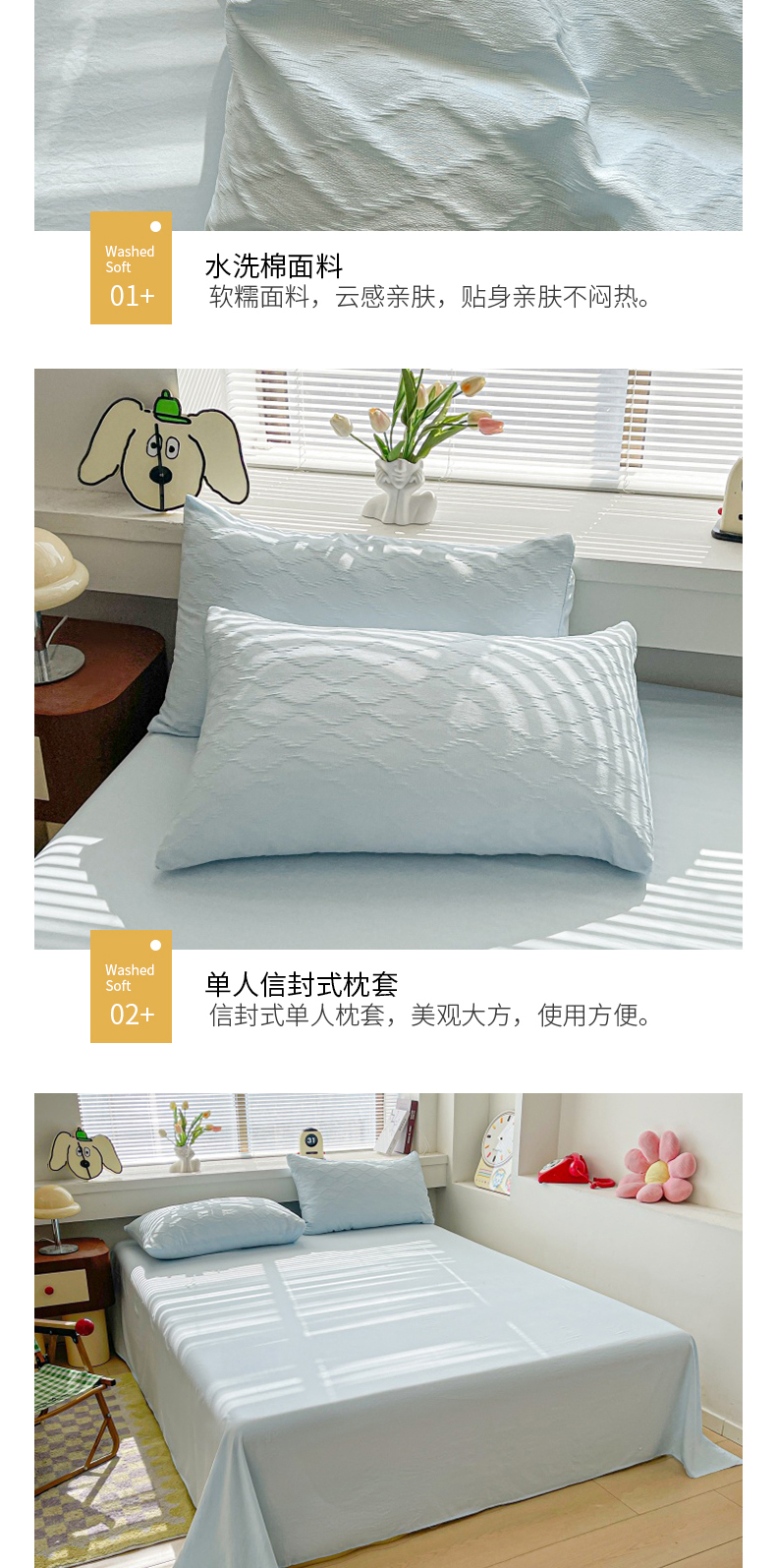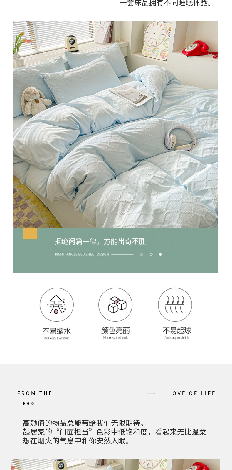 当前位置: 91家纺网 > 商品网购 > 床品套件 > 四件套 > 水洗棉四件套 > 麒东家纺 2025年新款水洗棉春夏菱形格双拼小清新高品质四件套 菱形格-天蓝