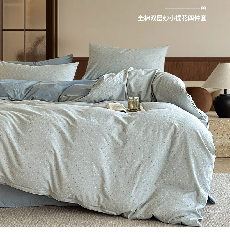 当前位置: 91家纺网 > 商品网购 > 床品套件 > 四件套 > 全棉普通四件套 > ab家纺 2025新款小碎花三层纱 波尔卡-兰