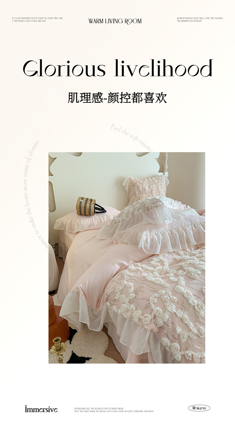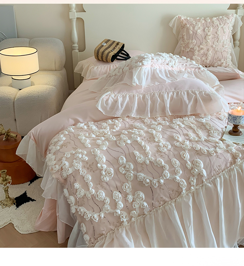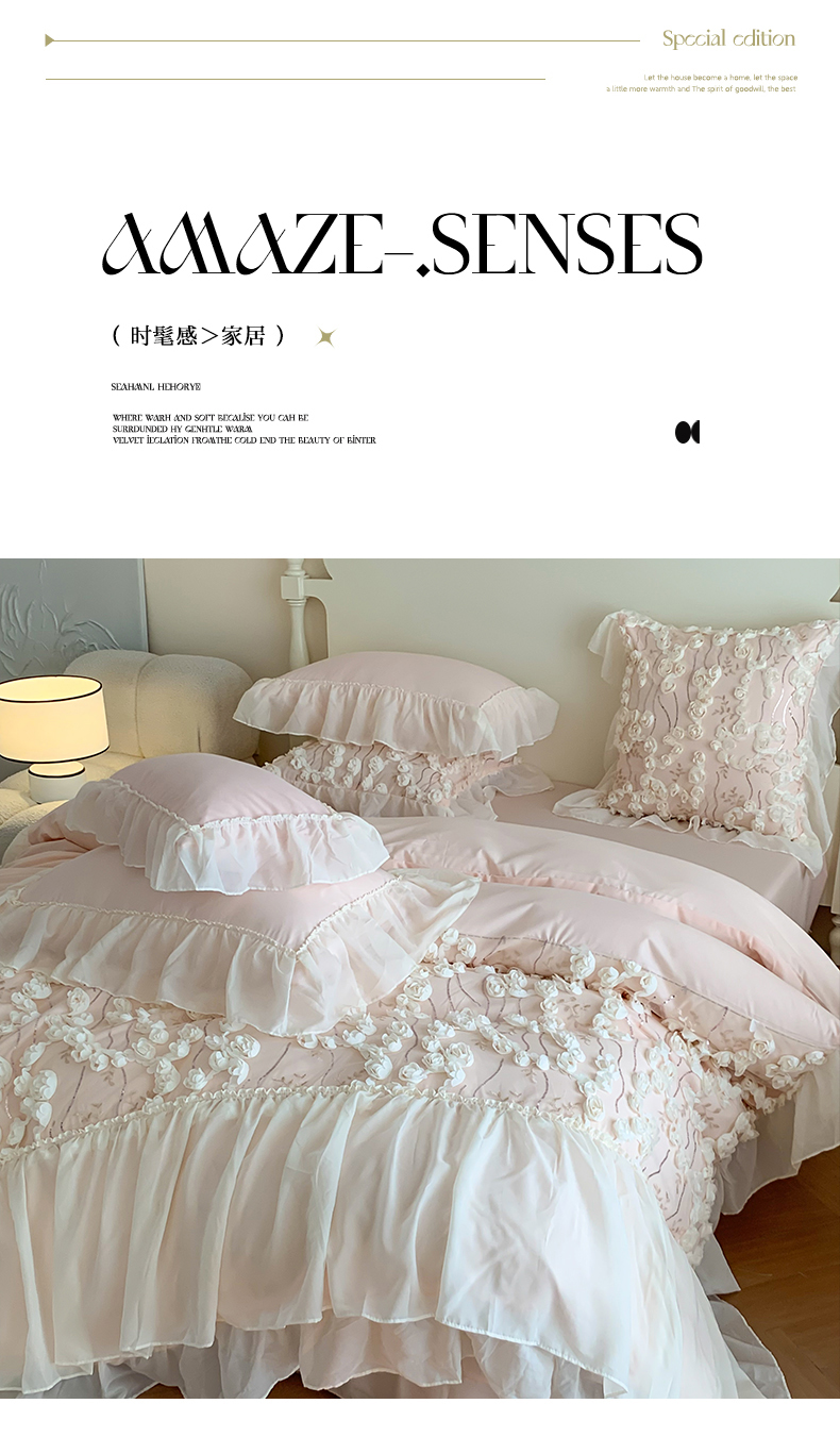 当前位置: 91家纺网 > 商品网购 > 床品套件 > 四件套 > 其它四件套 > 吾欢心2025新款 A类糯小棉立体绣花雪纺花边四件套(玫瑰故事系列) 玫瑰故事粉