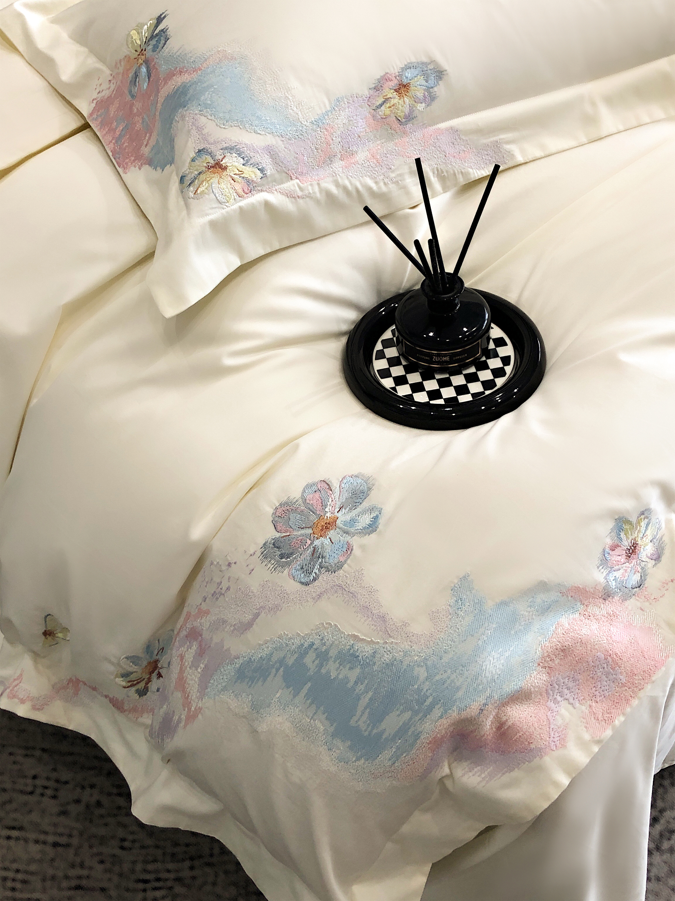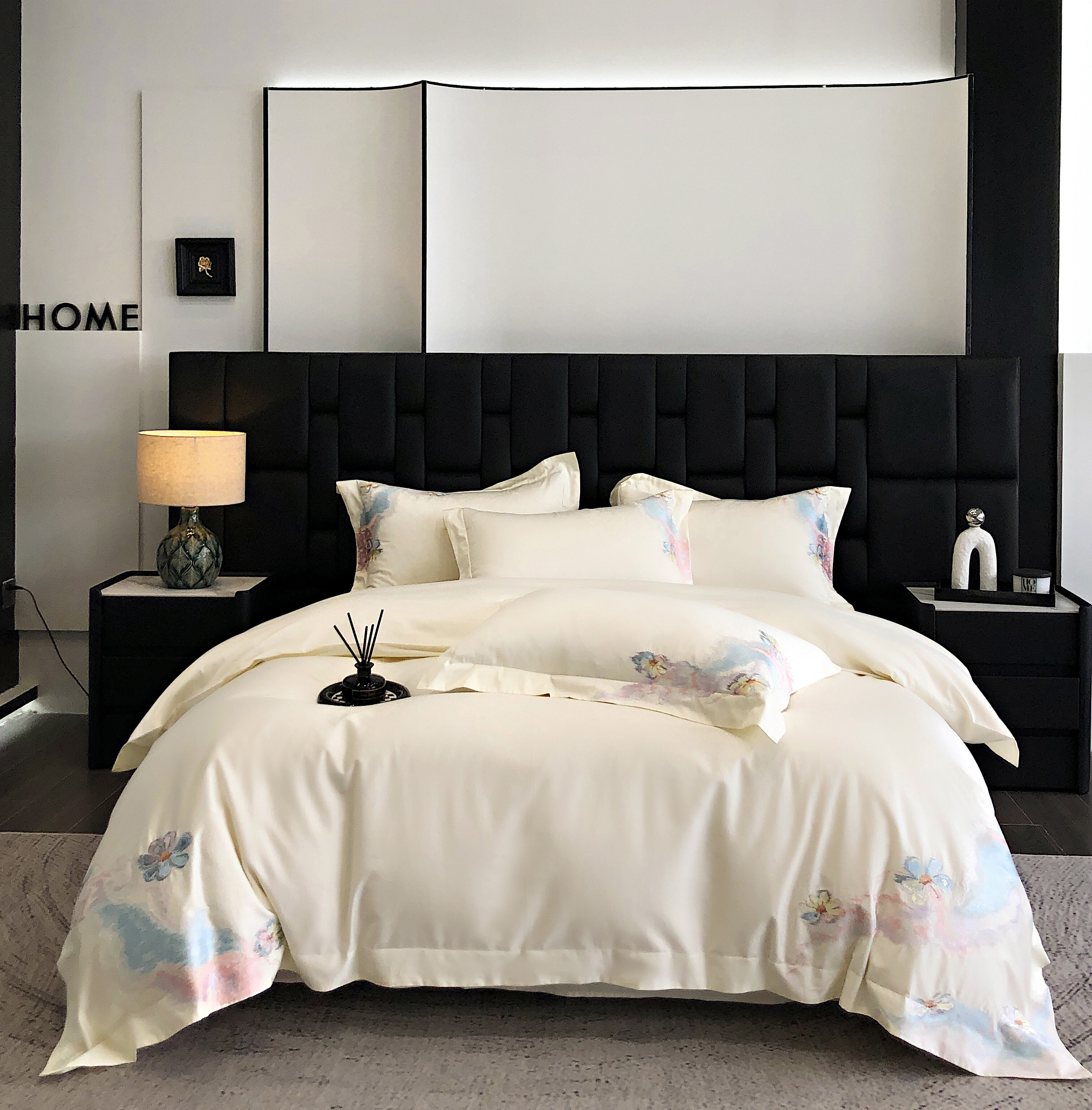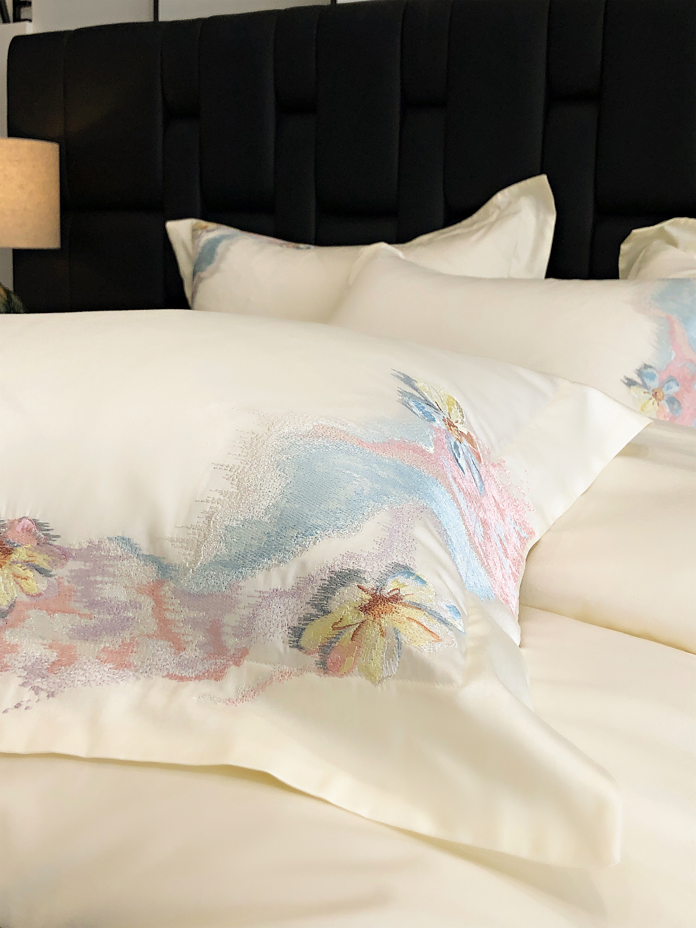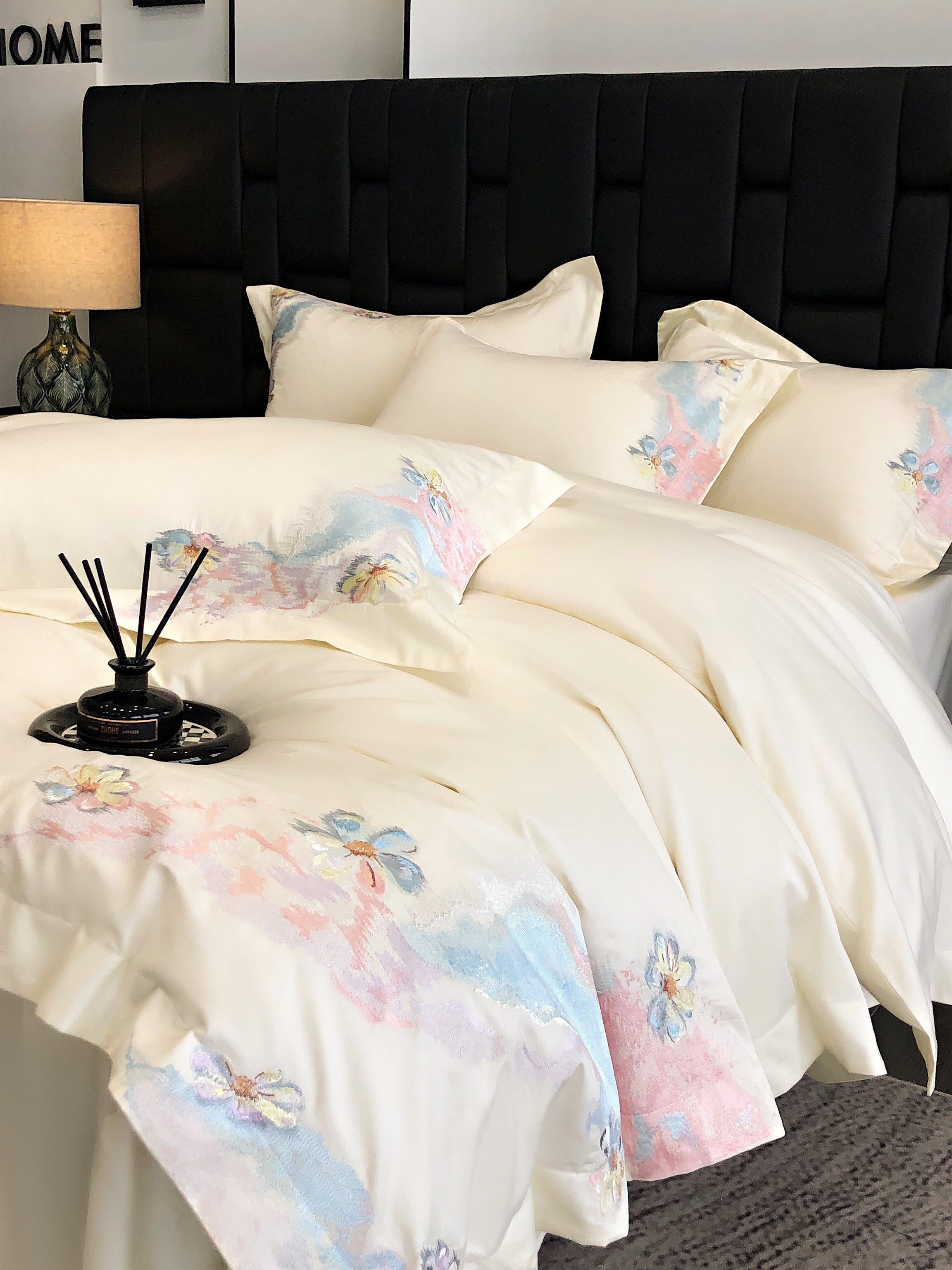 (总)佳汐蓝家纺 2025新款100支贡缎提花全棉刺绣婚庆四件套-繁花佩影,繁花佩影