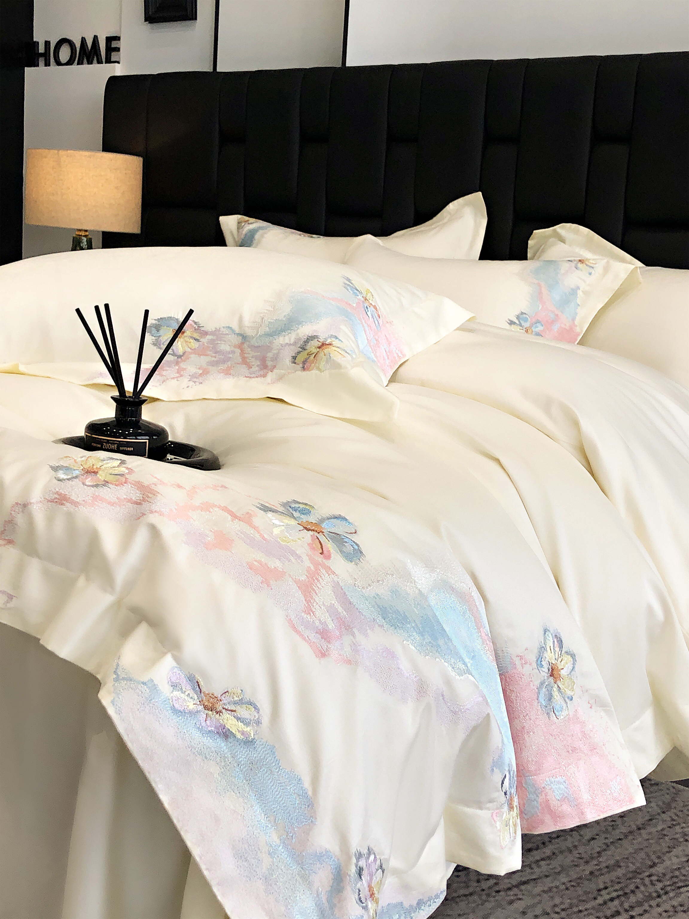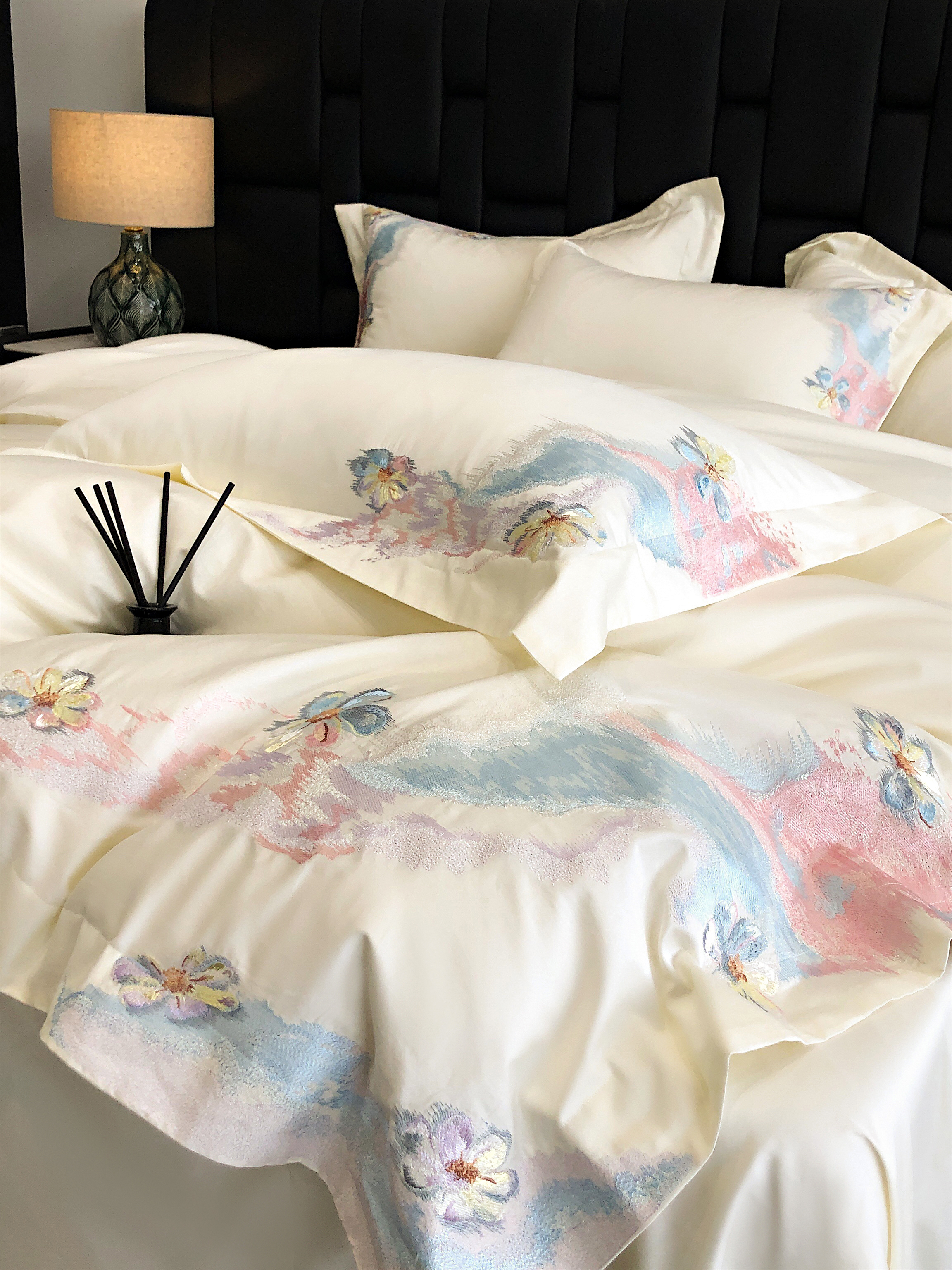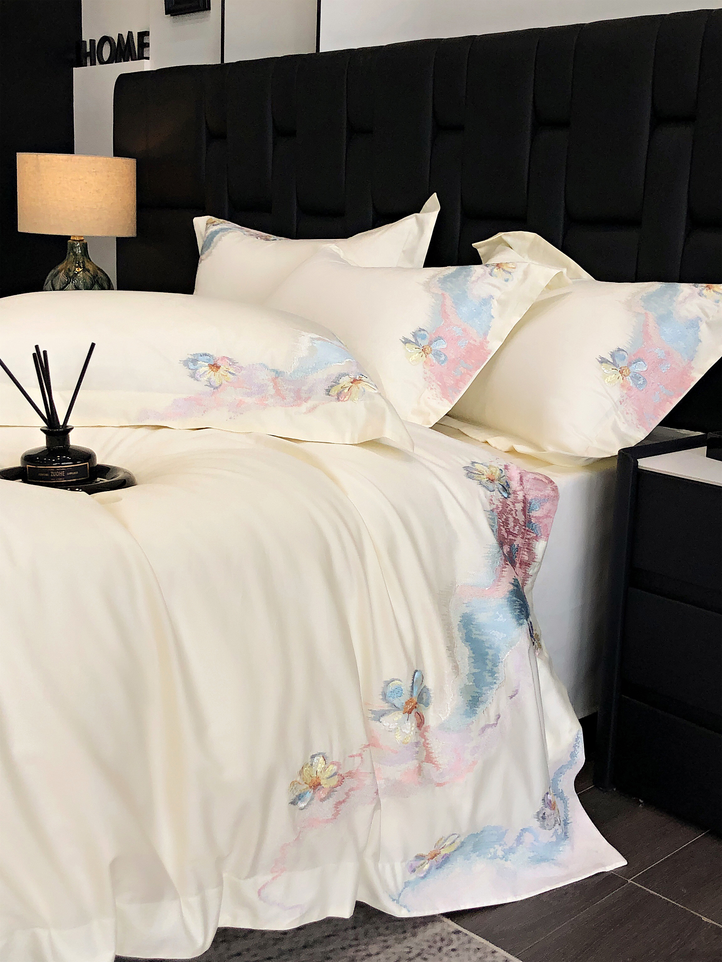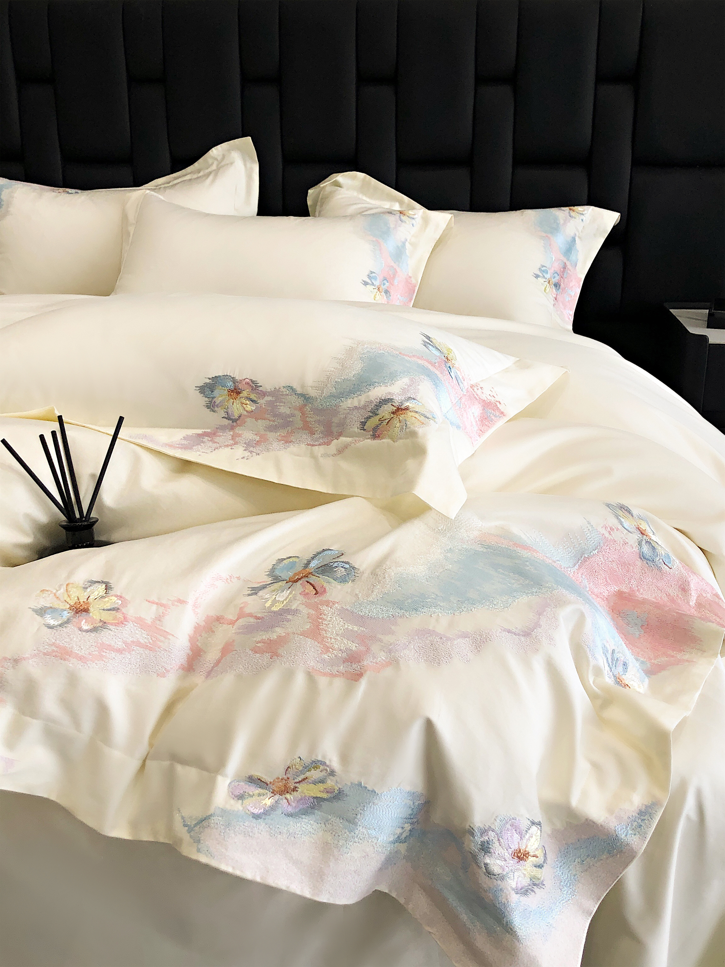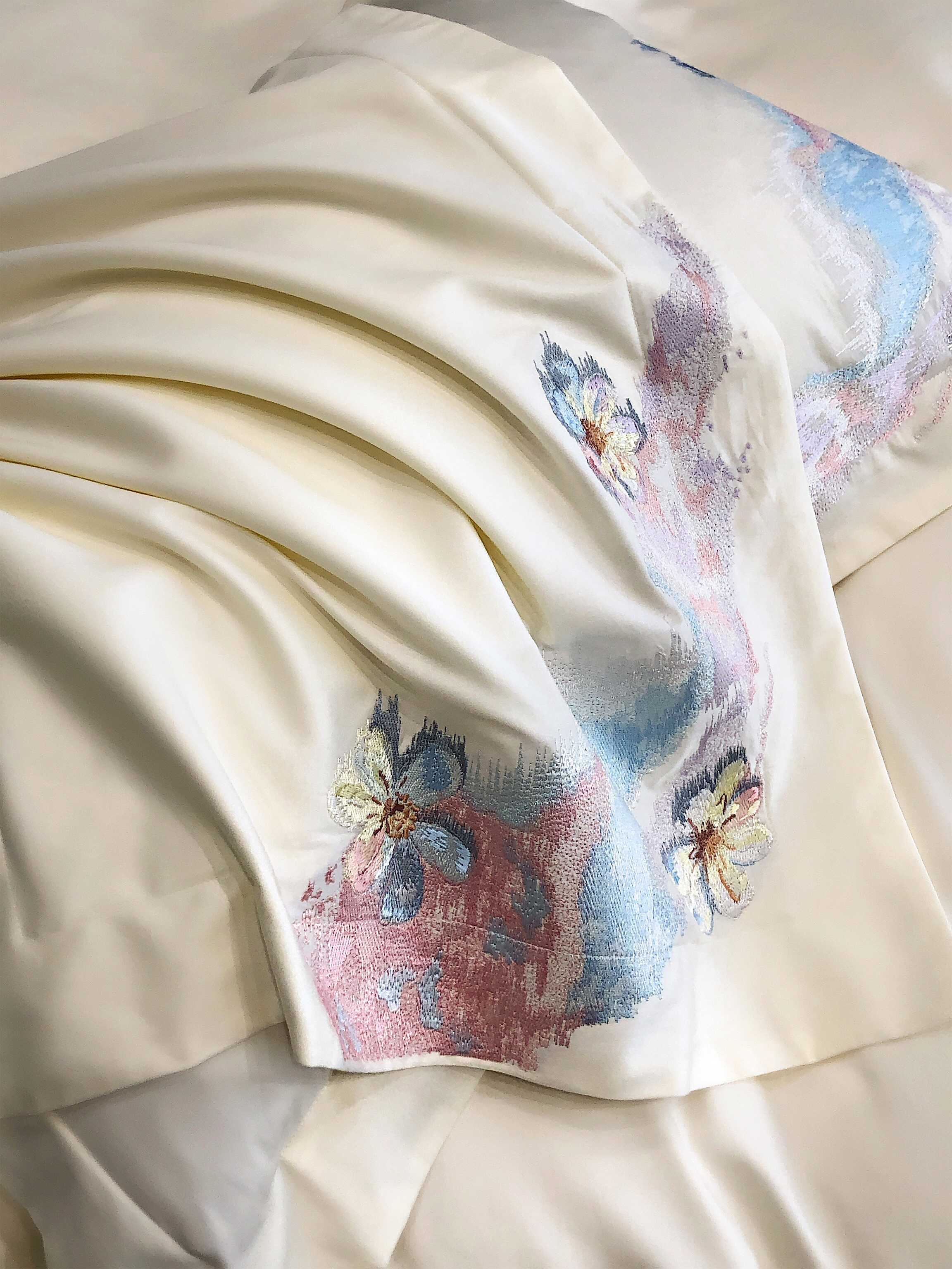 (总)佳汐蓝家纺 2025新款100支全棉贡缎数码印花四件套-画蝶,画蝶