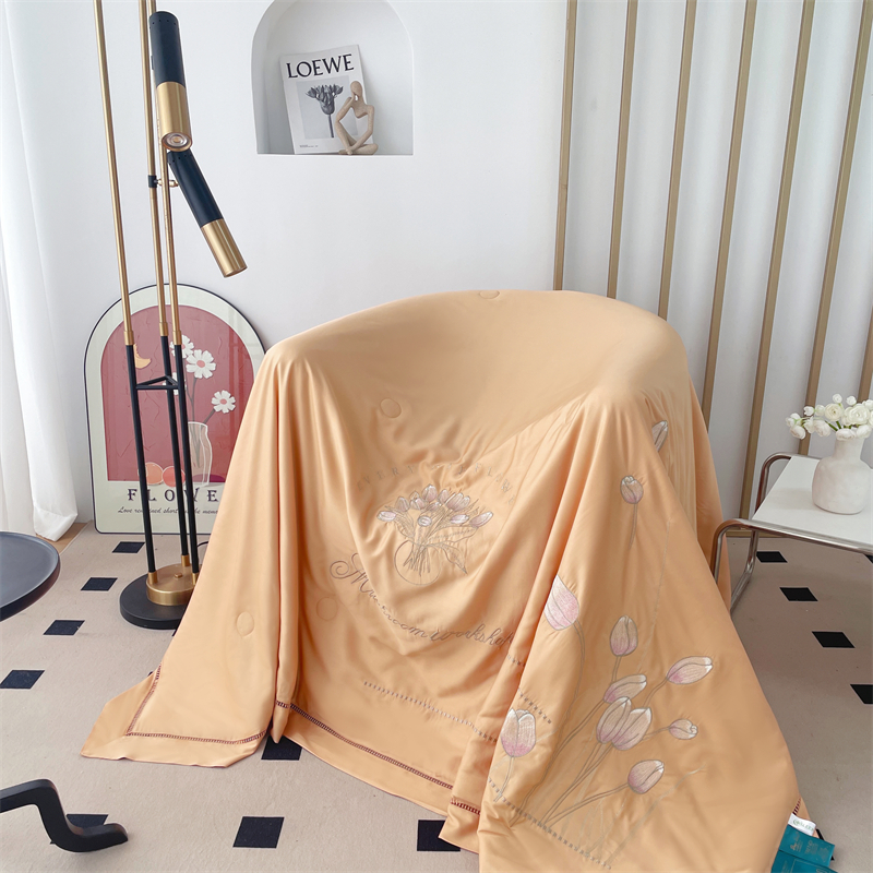 (总)优姿家纺 2025新款60S天丝绣花镂空夏被1,粉色,灰色,蓝色,橘色,黄色,浅绿色,肉粉色
