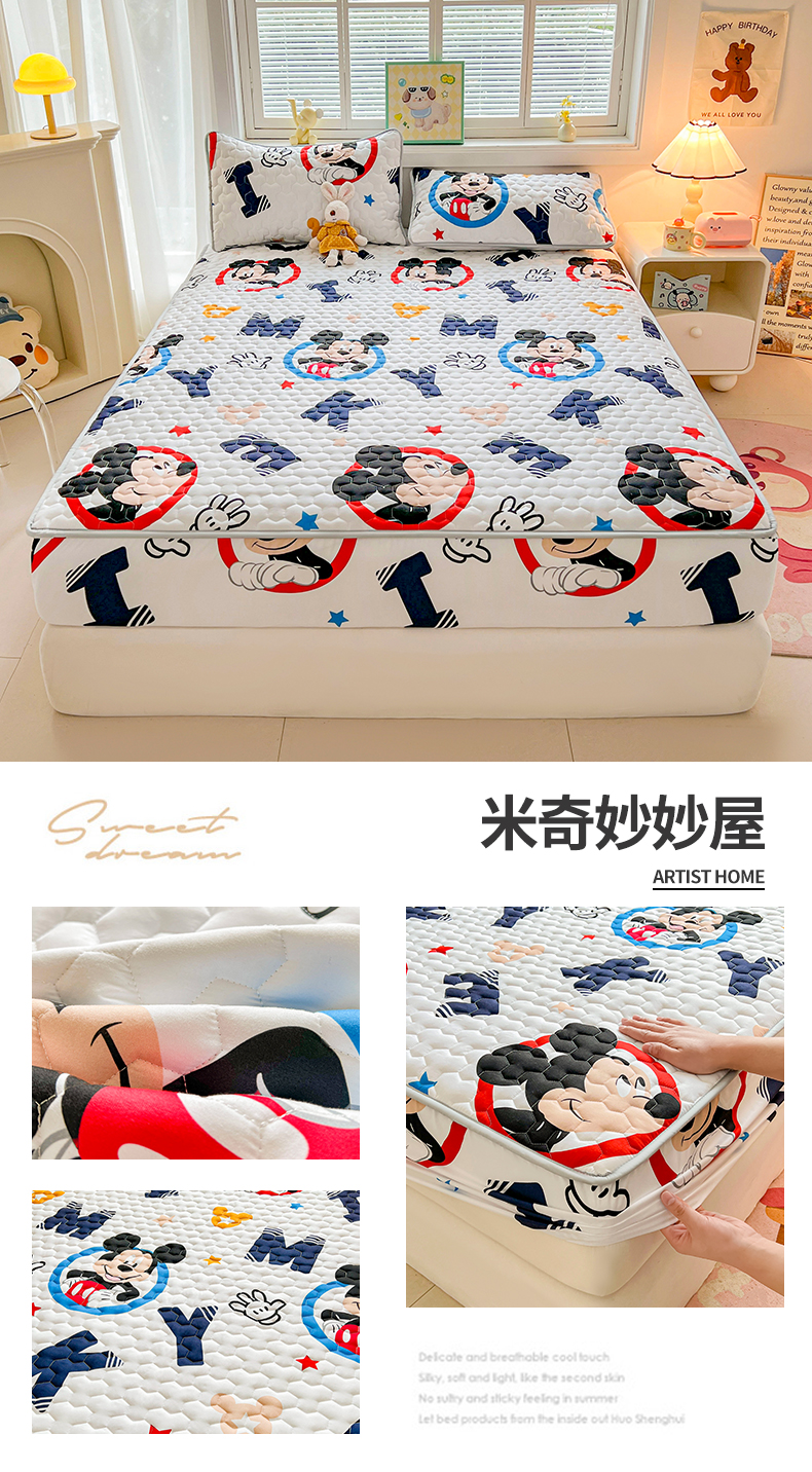 商品名称:迪梦思家纺 2025新款A类正版授权卡通印花水洗棉夹棉学生床笠 米奇妙妙屋