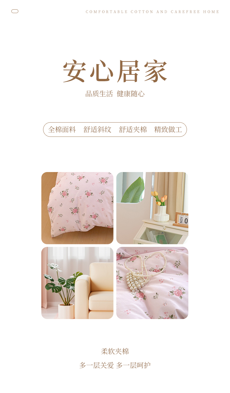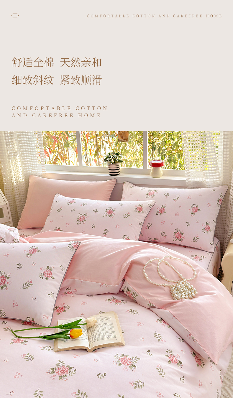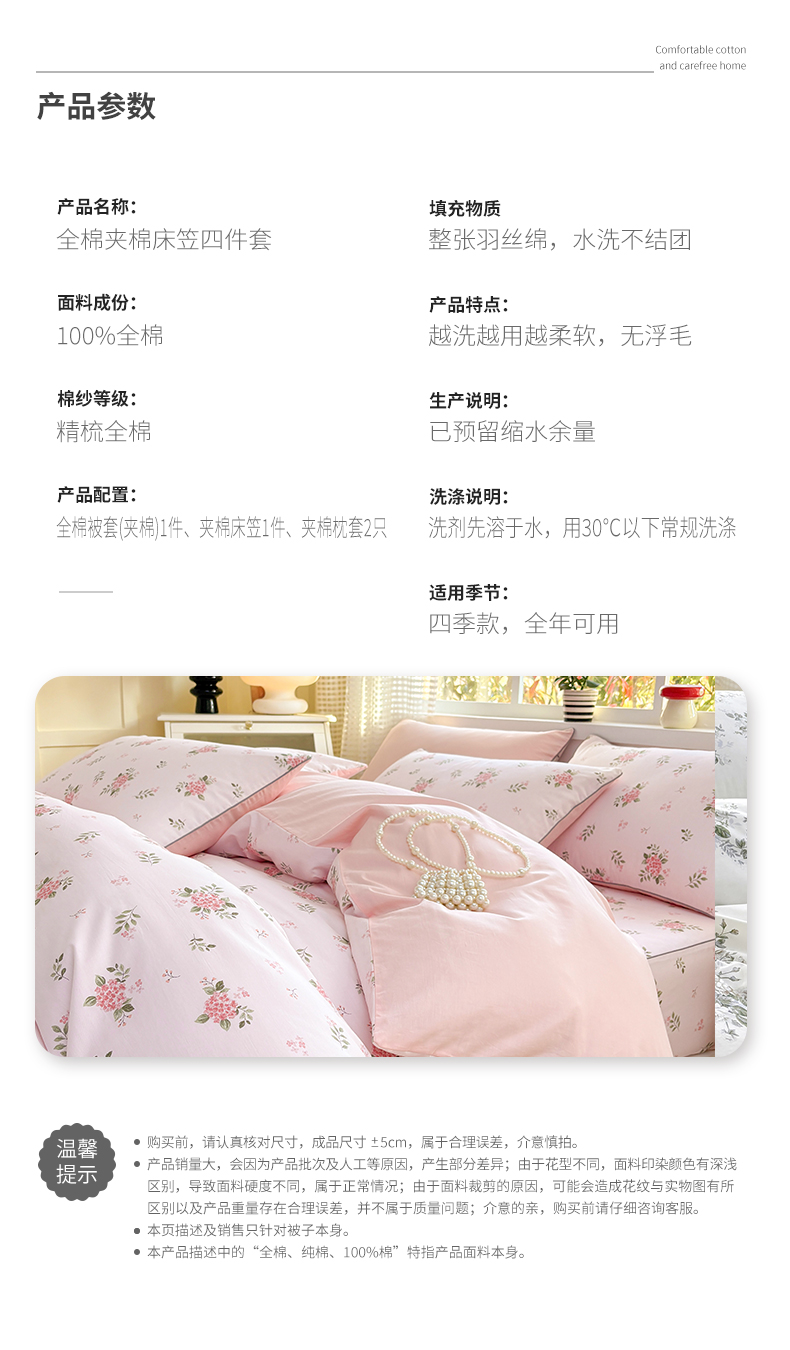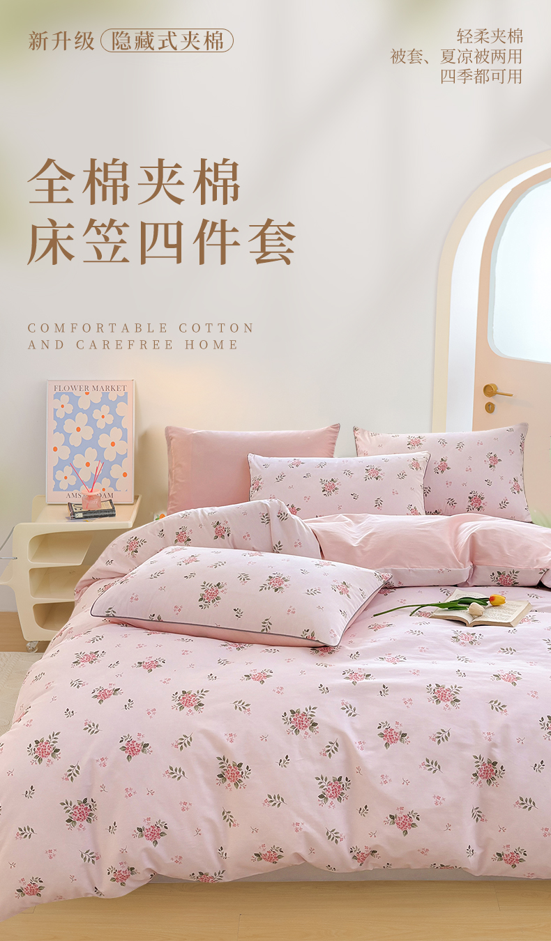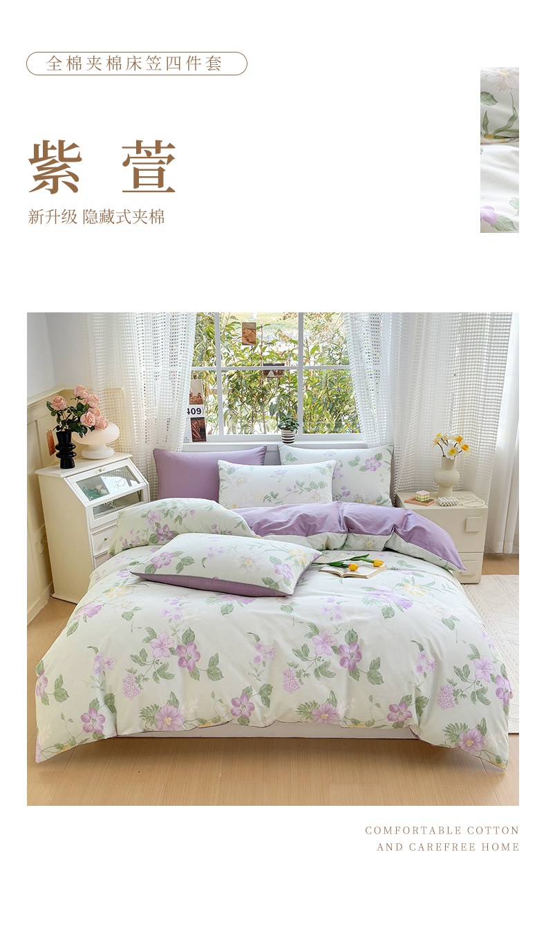 当前位置: 91家纺网 > 商品网购 > 床品套件 > 四件套 > 全棉普通四件套 > 元元被芯 2025新款40支13372全棉印花全棉夹棉床笠四件套 诗雨