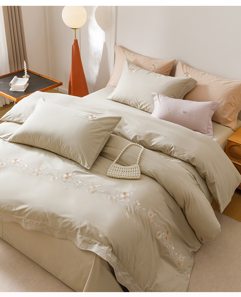 (总)艾莱家纺 2025新款A类精梳纯棉刺绣花四件套-赫柏,赫柏-橙夕,赫柏-花田米,赫柏-浅粉,赫柏-夜绿