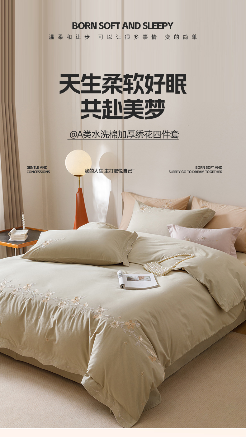 (总)艾莱家纺 2025新款A类水洗棉加厚绣花四件套-栀夏,栀夏-草莓奶粉,栀夏-格林棕,栀夏-暮光绿,栀夏-青叶紫,栀夏-银蓝