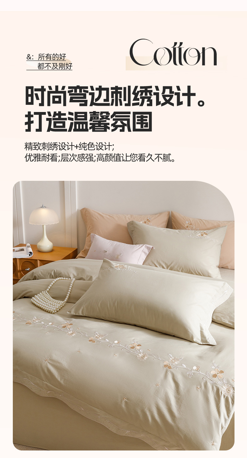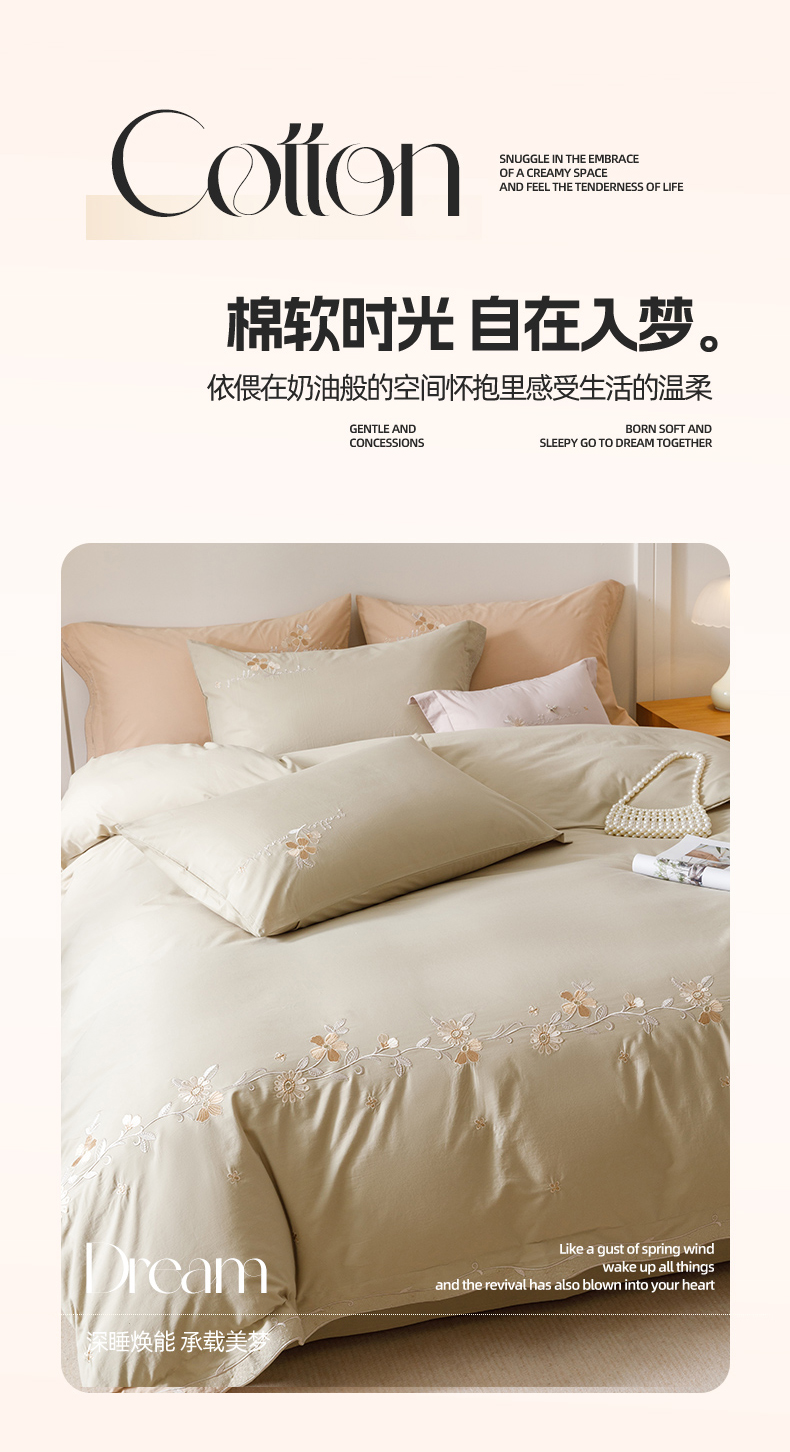 (总)艾莱家纺 2025新款A类精梳贴布纯棉刺绣花四件套-星澜,星澜-春绿,星澜-美拉德,星澜-蜜糖粉,星澜-松露咖,星澜-小米,星澜-烟云灰