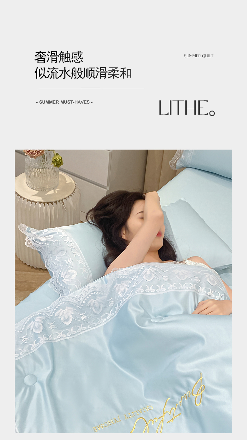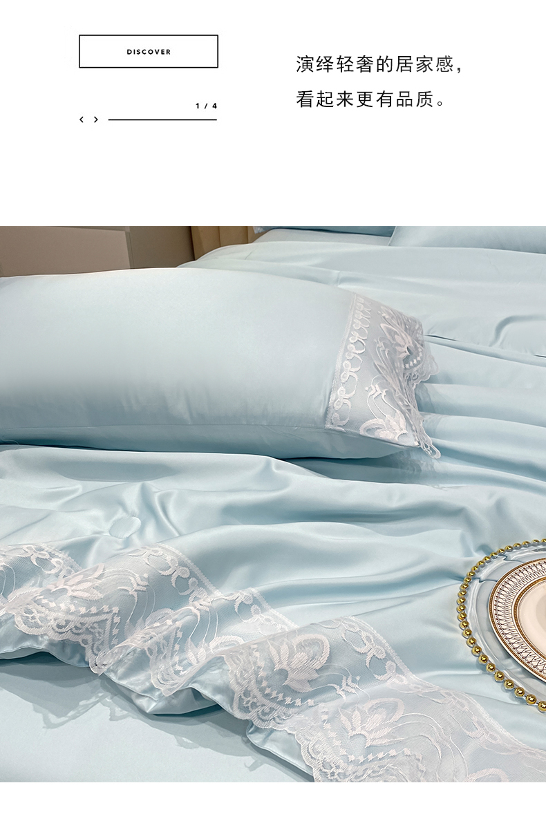 • 91家纺网 家纺一手货源 找家纺 益多眠 2026新款水洗天丝蕾丝花边夏被四件套轻奢夏被花边夏被-公主风 公主-天空蓝