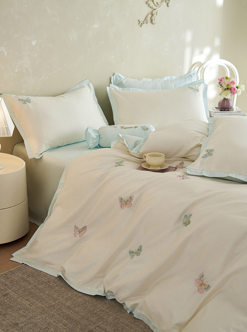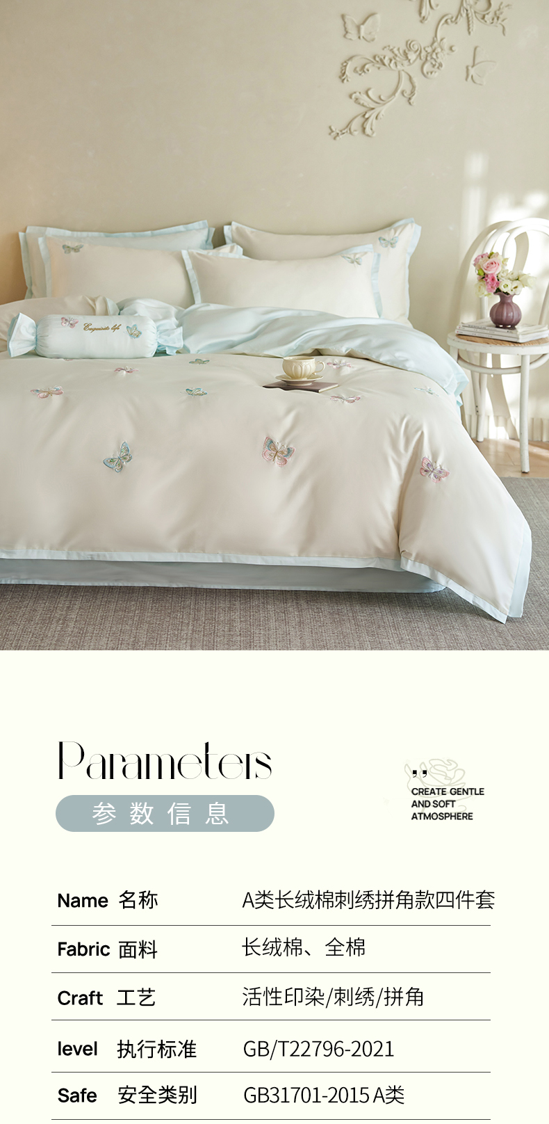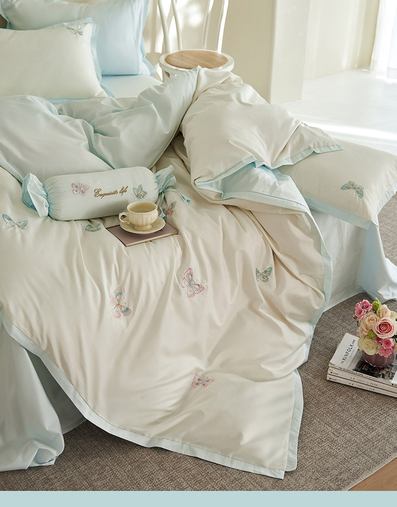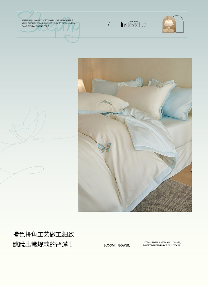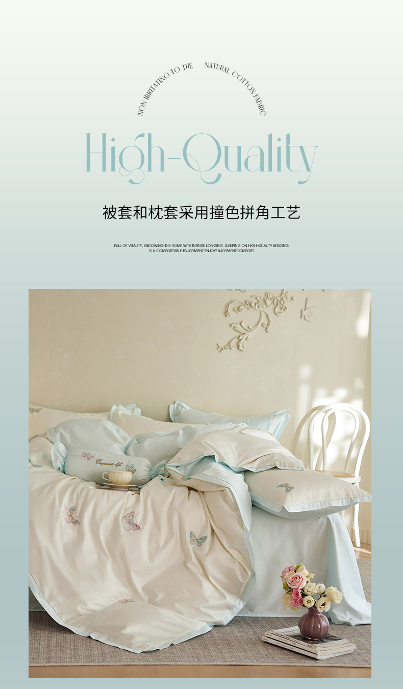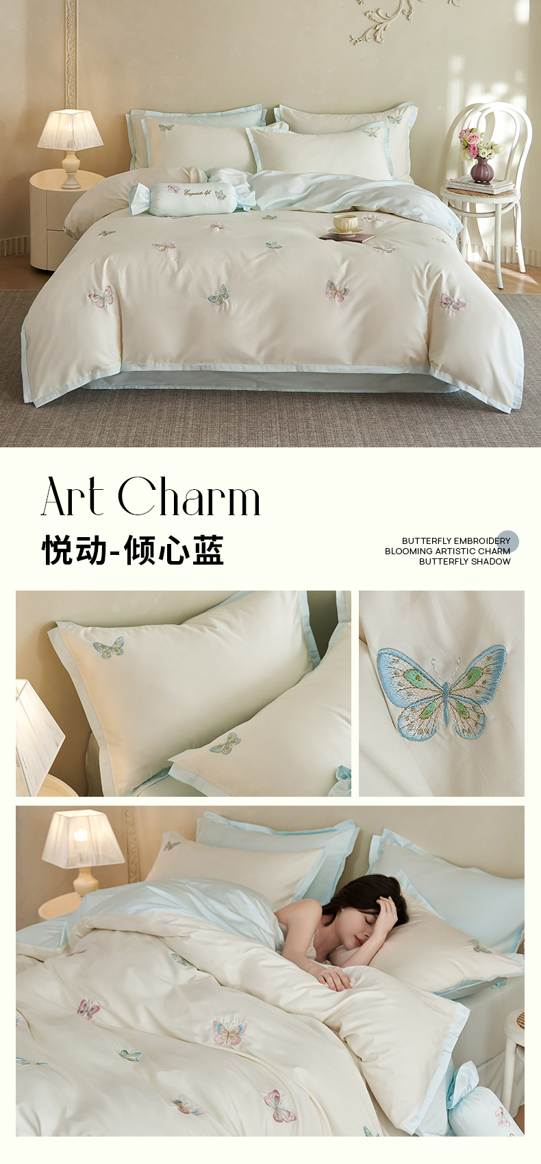 当前位置: 91家纺网 > 商品网购 > 床品套件 > 四件套 > 其它四件套 > 2025 A类长绒棉刺绣拼角款四件套-悦动 悦动-倾心蓝