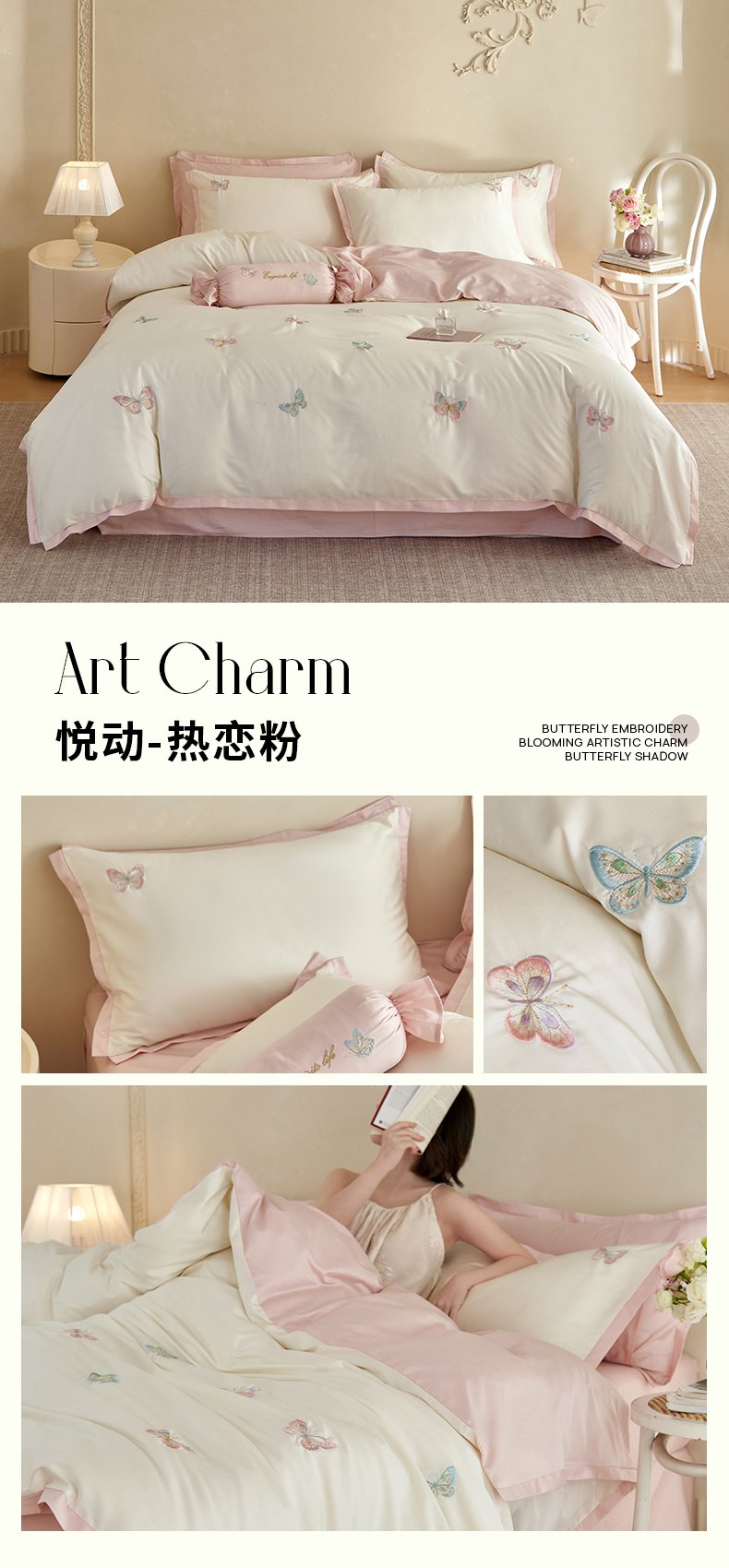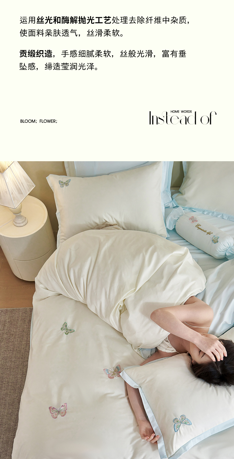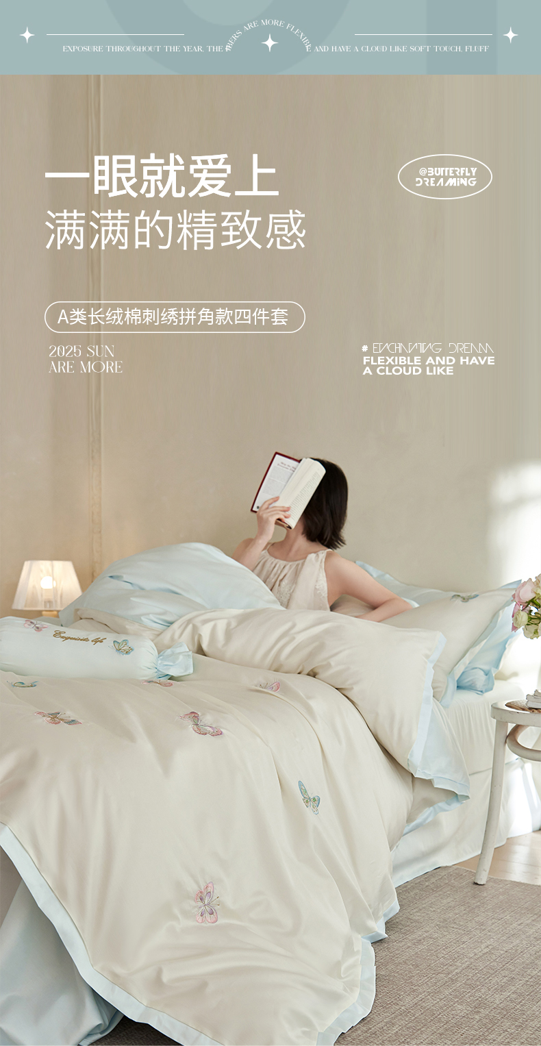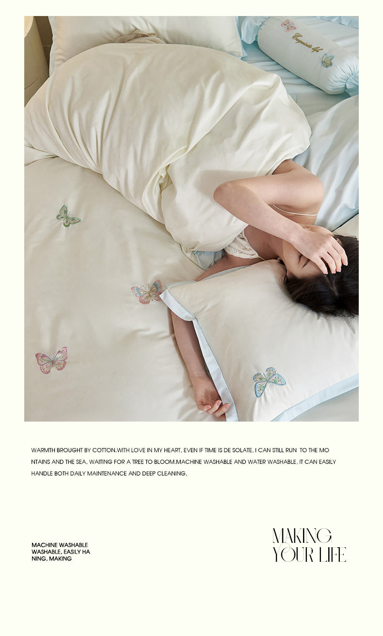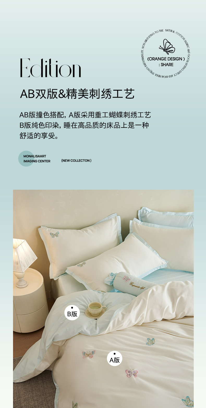 当前位置: 91家纺网 > 商品网购 > 床品套件 > 四件套 > 其它四件套 > 2025 A类长绒棉刺绣拼角款四件套-悦动 悦动-倾心蓝