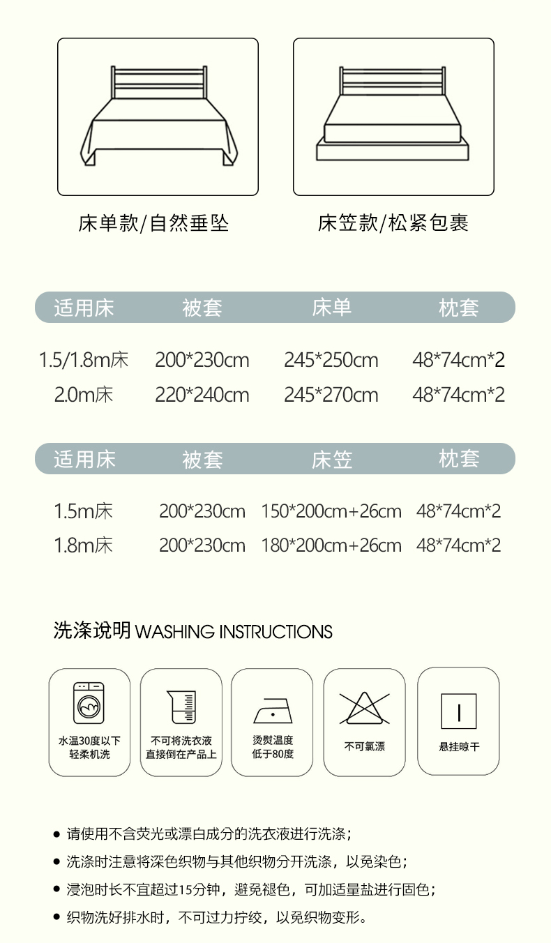 1.5-1.8床/被套200*230床单245*250枕套48*74*2 | ¥200.00 |
