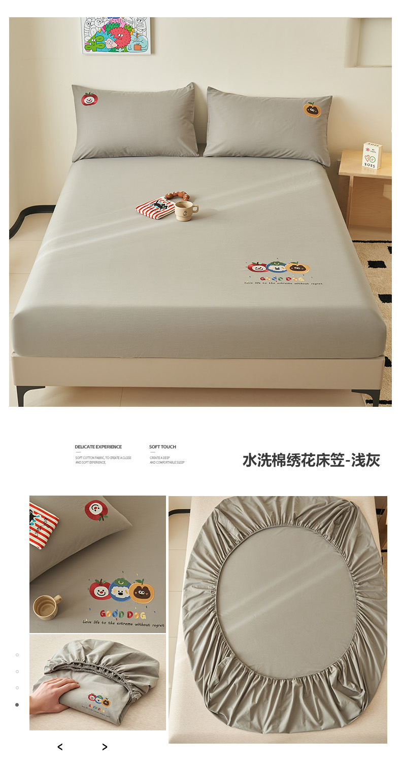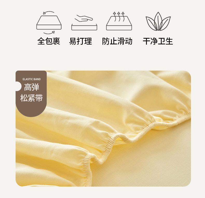 • 91家纺网 家纺一手货源 找家纺 寐绸家纺 2025新款纯棉水洗棉纯色绣花单床笠 水洗棉绣花床笠-米黄