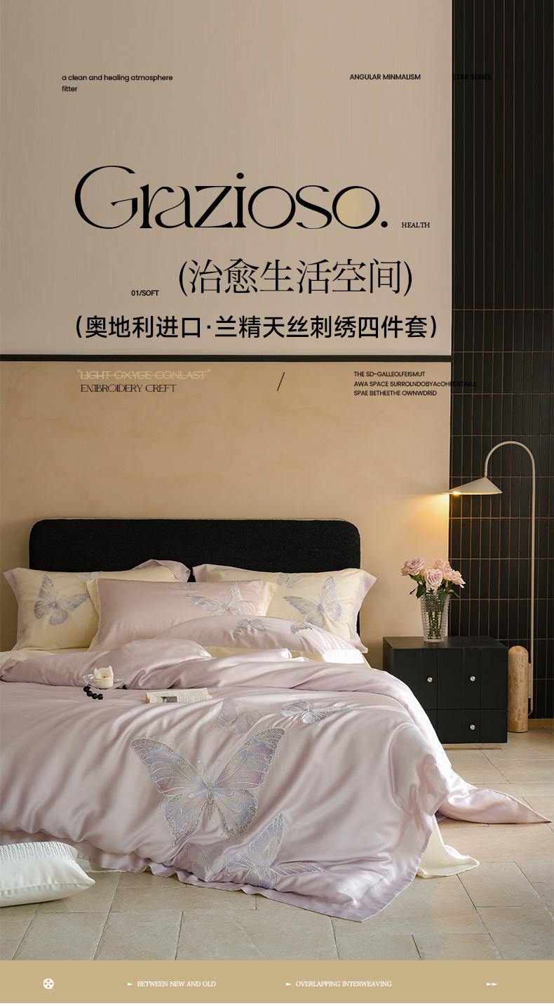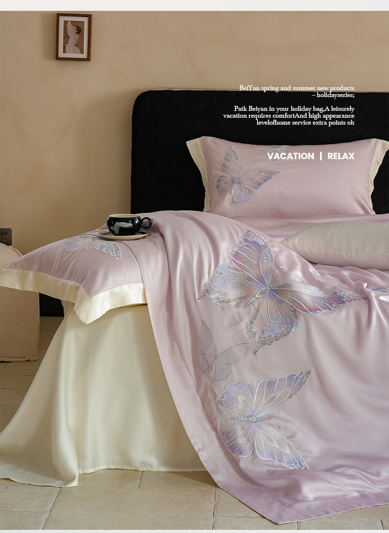 简纯主义 2025新款60S奥地利进口兰精天丝四件套-彩蝶幻舞 彩蝶-紫