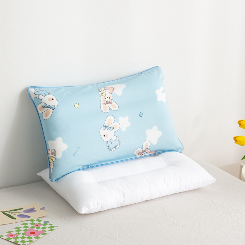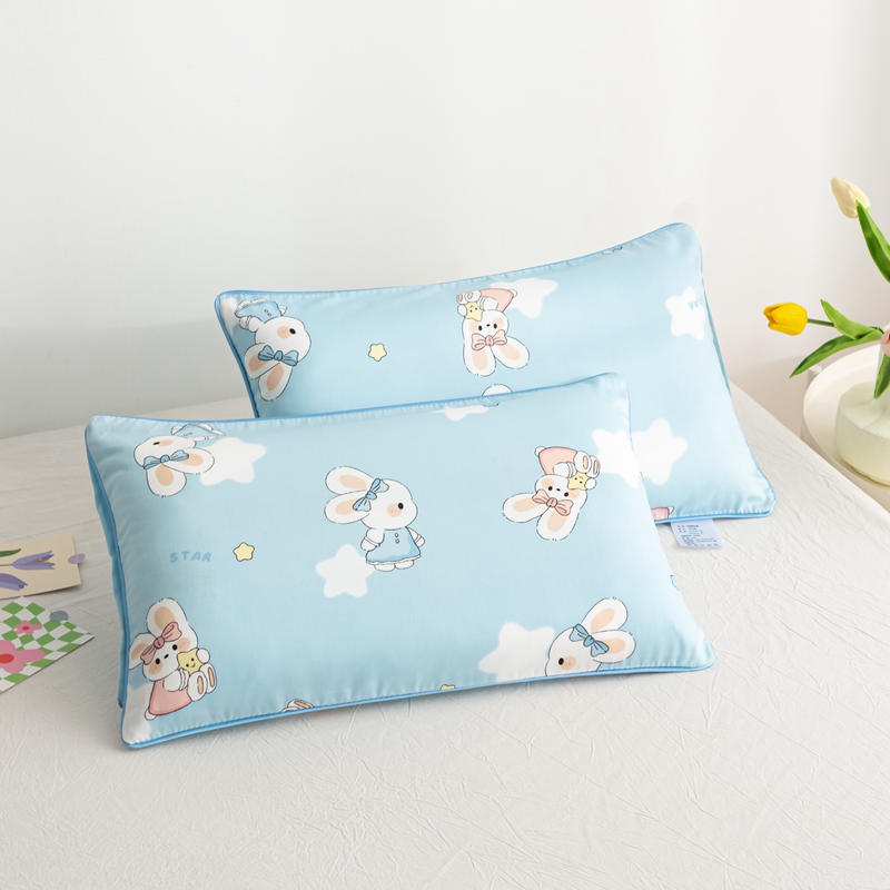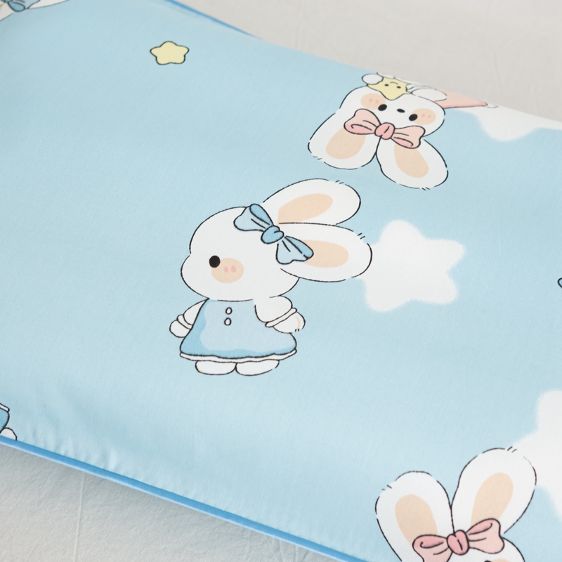 萌番宝 A类新款60支长绒棉纯棉儿童枕套枕头 嗒嗒兔蓝