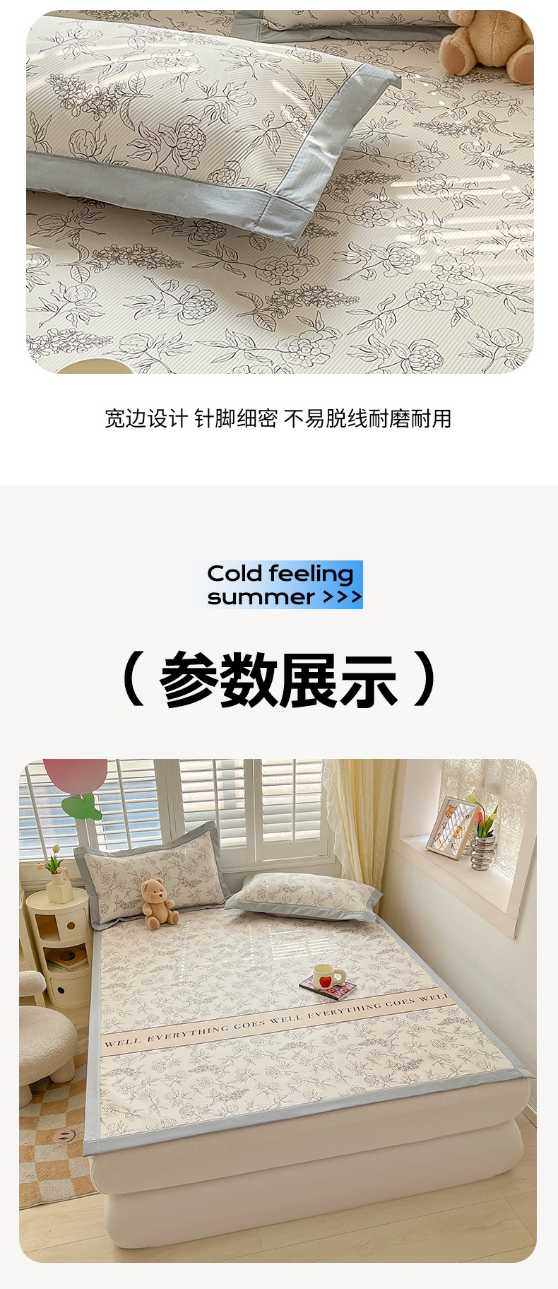 星座家纺 2025新款大斜纹复合冰丝凉席-床席款 午后茶花