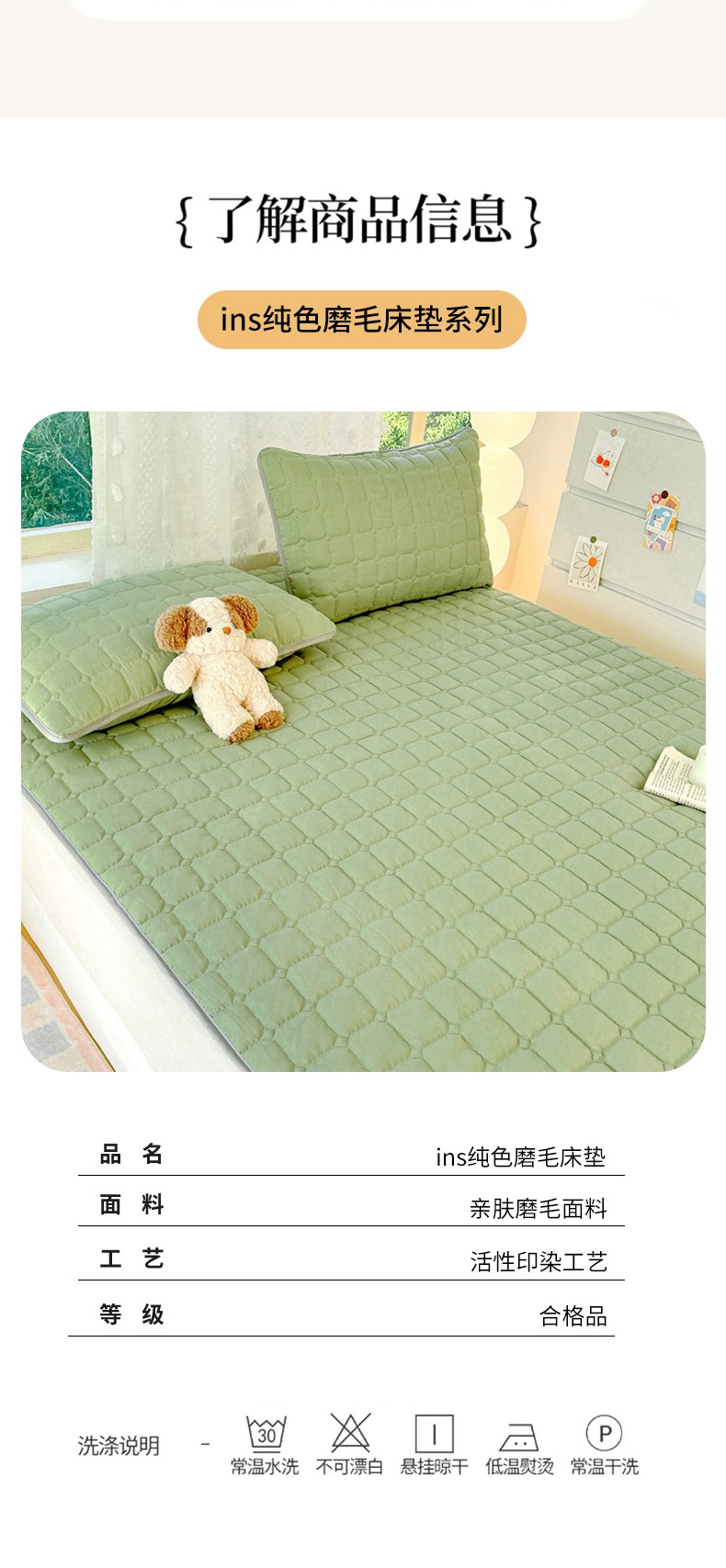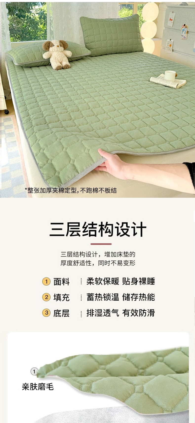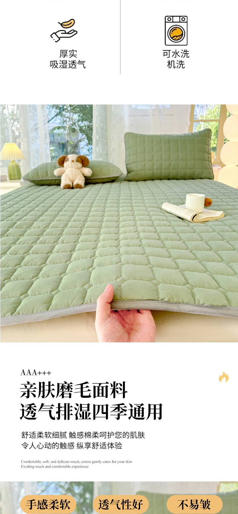 当前位置: 91家纺网 > 商品网购 > 床垫/床褥 > 普通床垫 > 麒东家纺 2025新款ins纯色磨毛夹棉床垫 浅绿