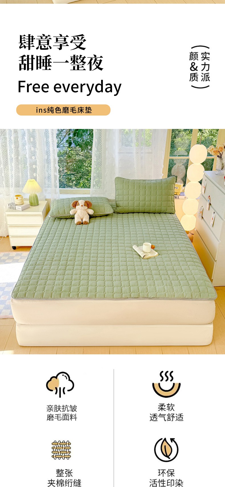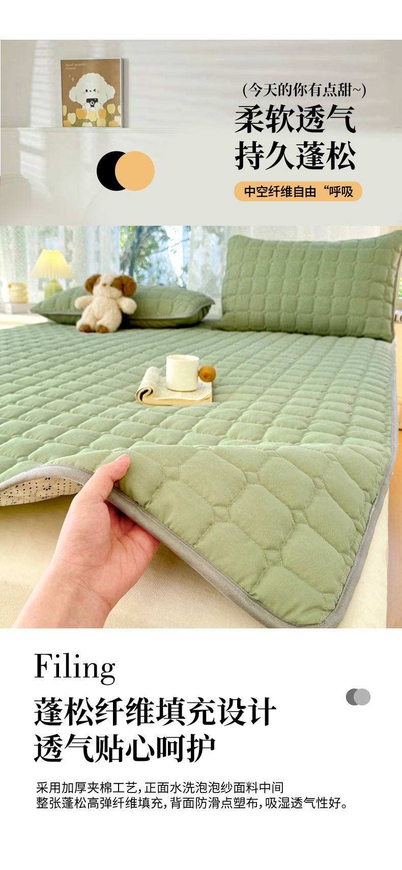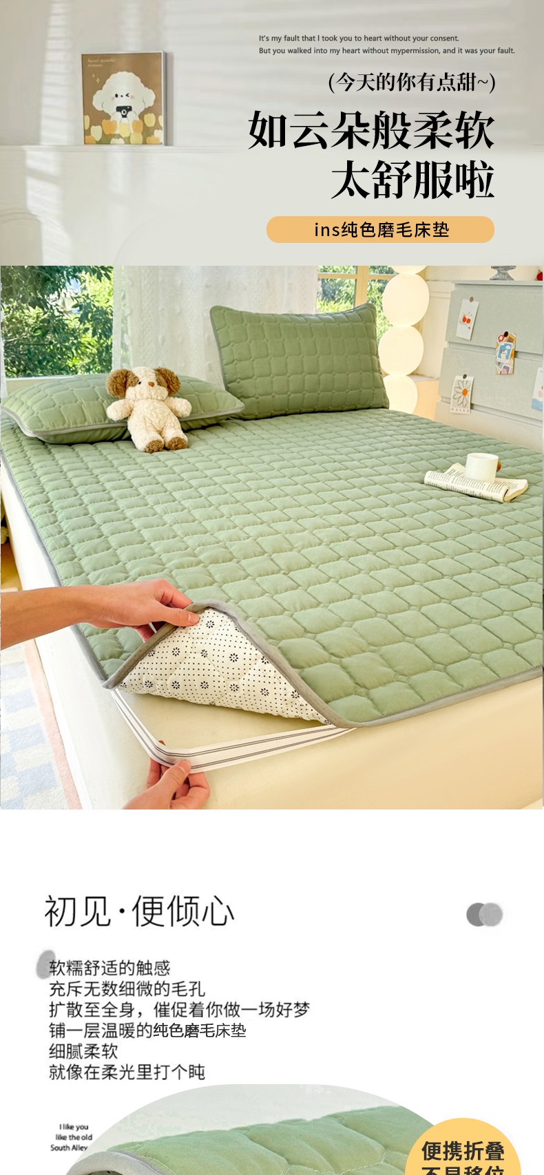 当前位置: 91家纺网 > 商品网购 > 床垫/床褥 > 普通床垫 > 麒东家纺 2025新款ins纯色磨毛夹棉床垫 浅绿