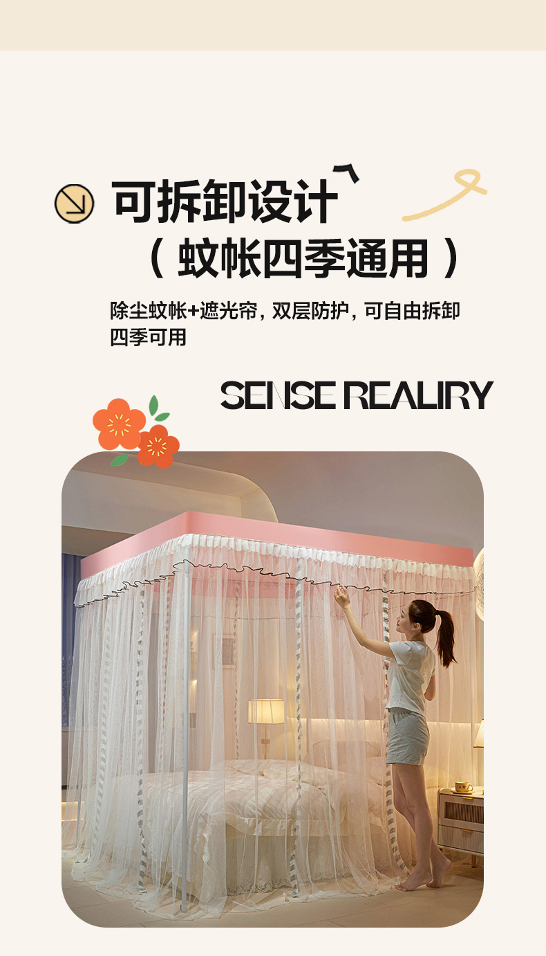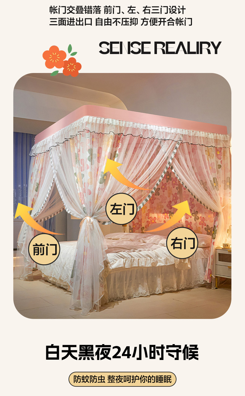 (总)锦逸家居 2025新款四季款三开门落地床幔蚊帐