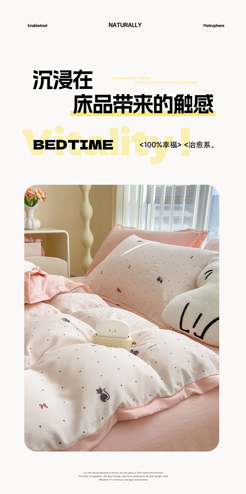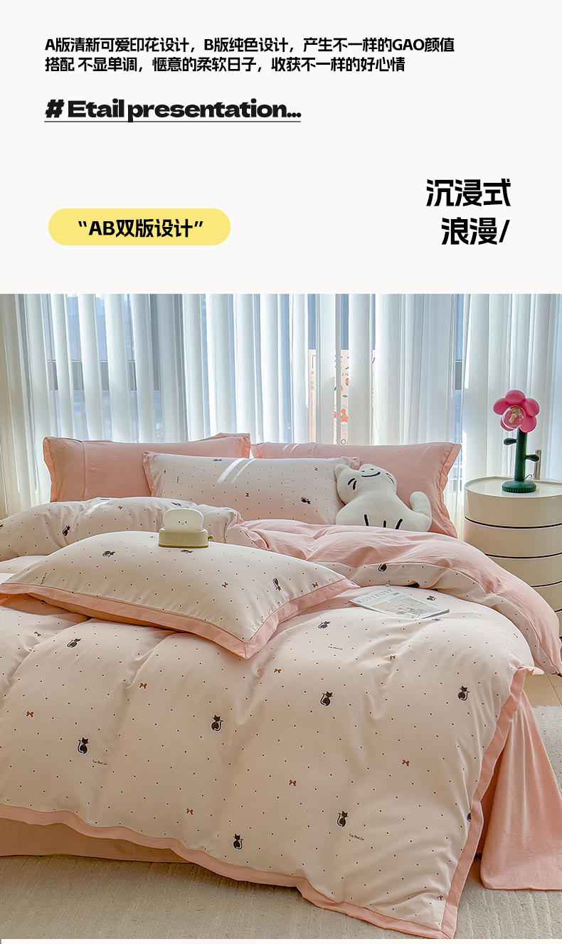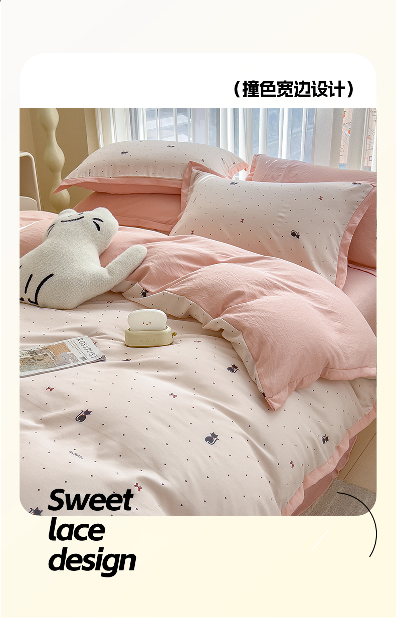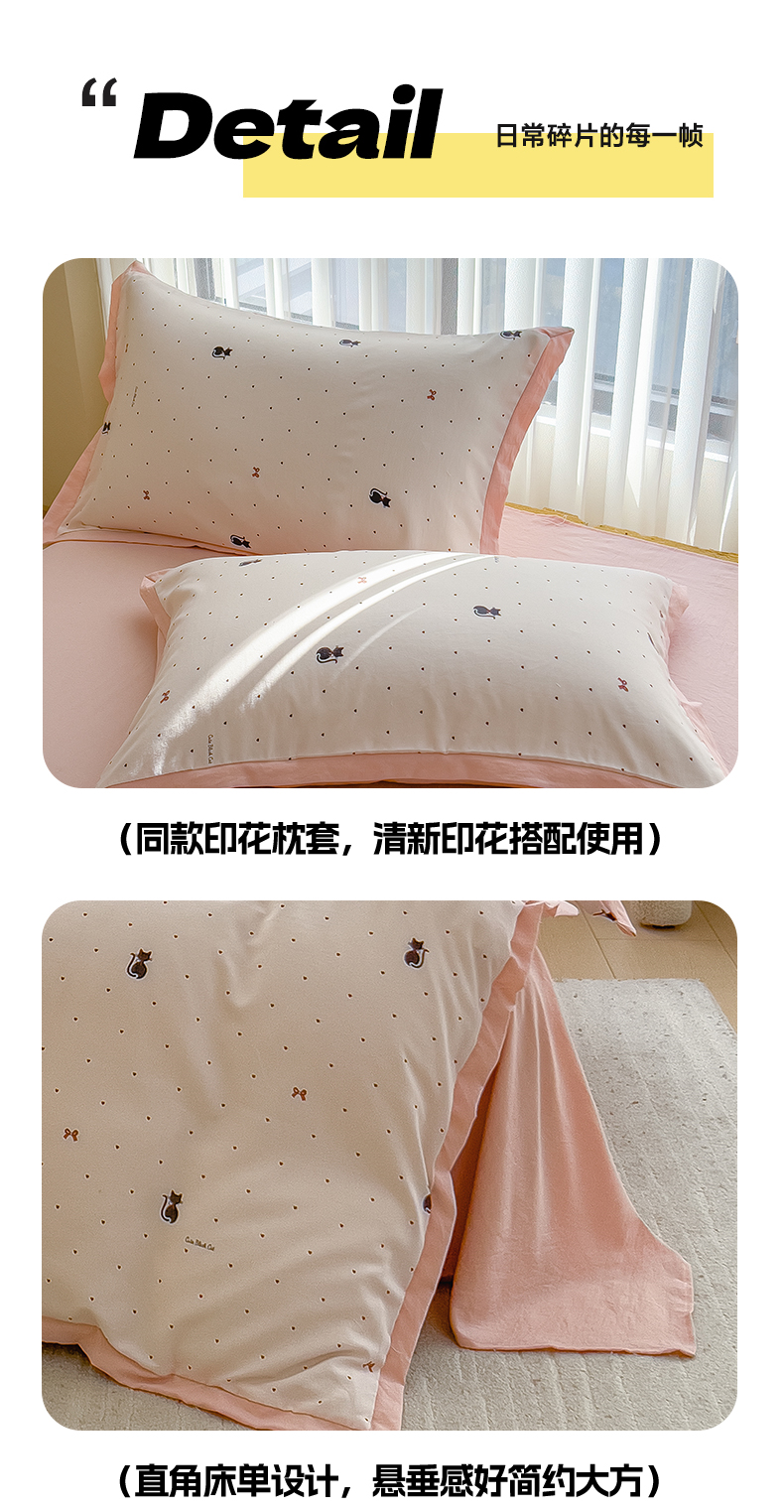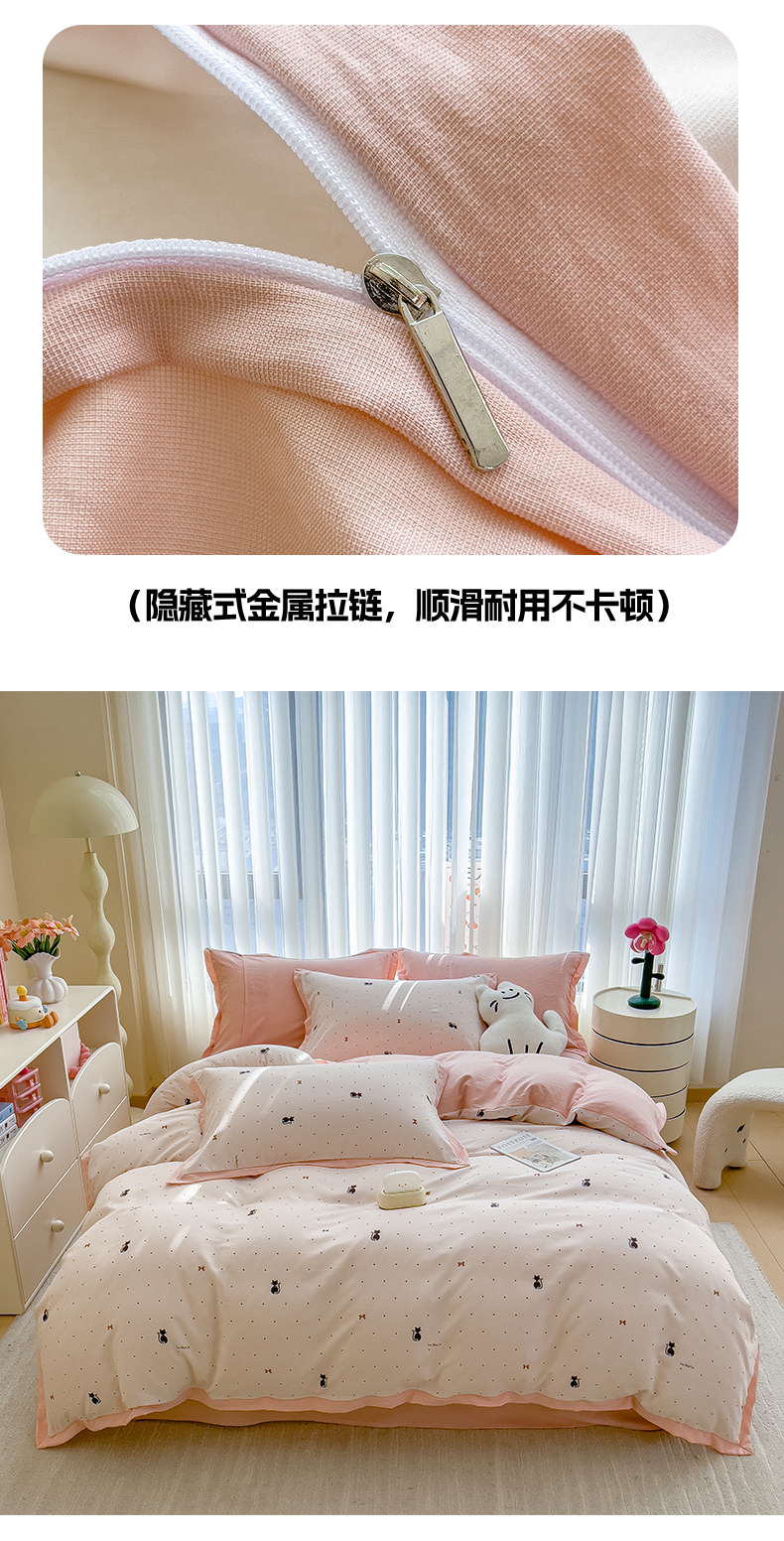 当前位置: 91家纺网 > 商品网购 > 床品套件 > 四件套 > 双层纱四件套 > 兄弟坊 2025新款小清新四层纱印花四件套 波点猫