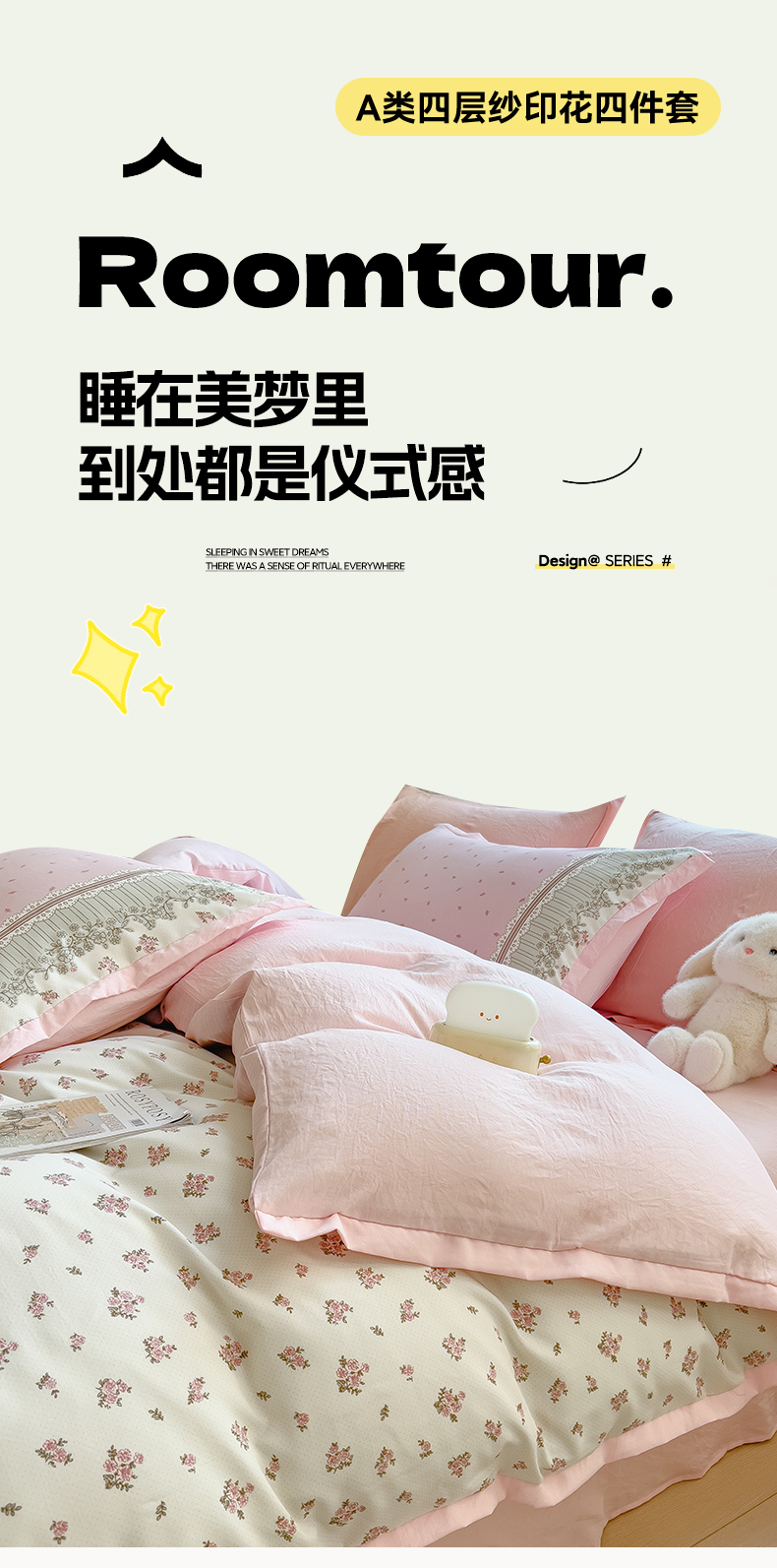 当前位置: 91家纺网 > 商品网购 > 床品套件 > 四件套 > 双层纱四件套 > 兄弟坊 2025新款小清新四层纱印花四件套 欣妍