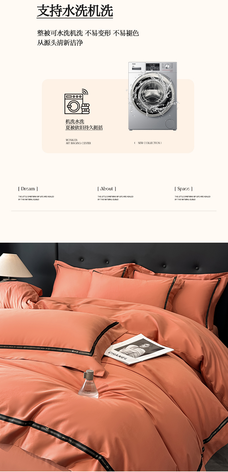 商品名称:魅都 2025新款100支长绒棉简约织带轻奢风四件套-罗伊 爱马橙