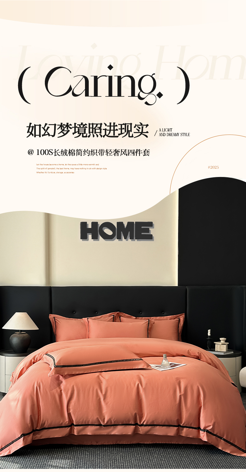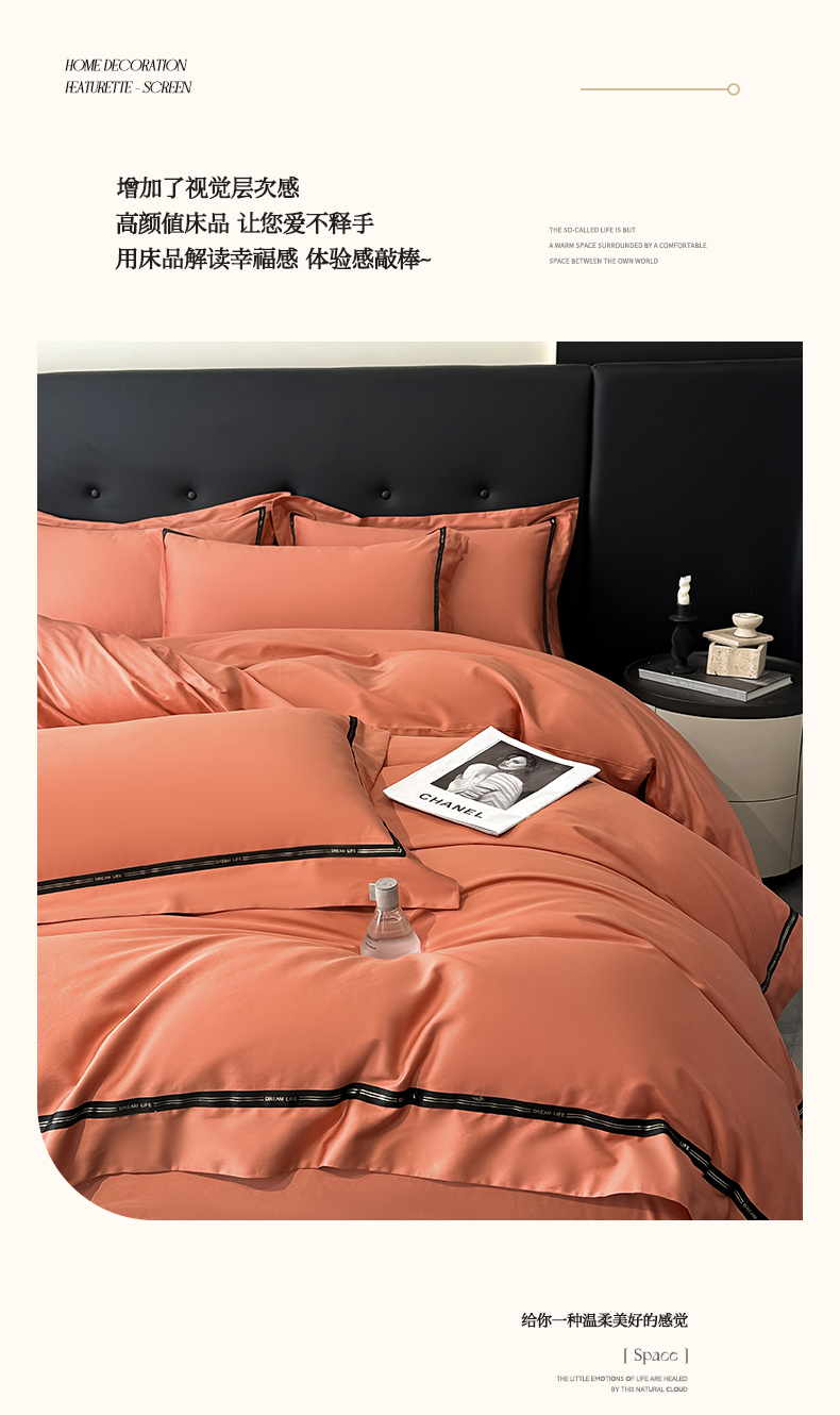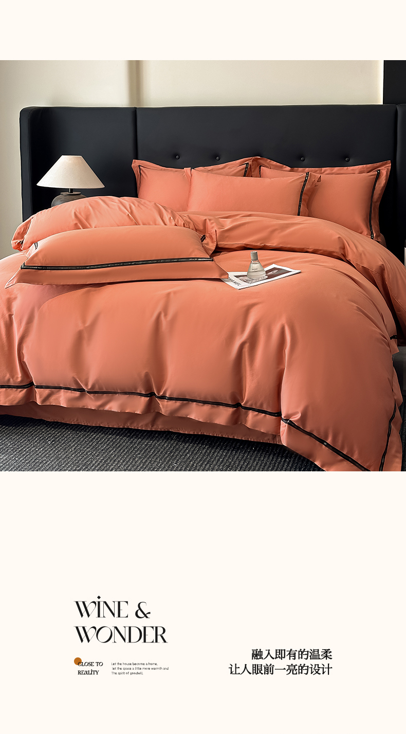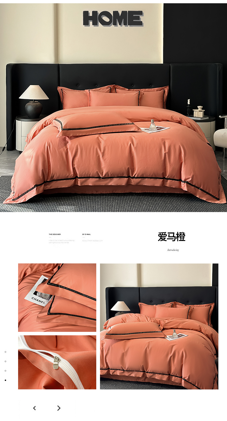魅都 2025新款100支长绒棉简约织带轻奢风四件套-罗伊 爱马橙