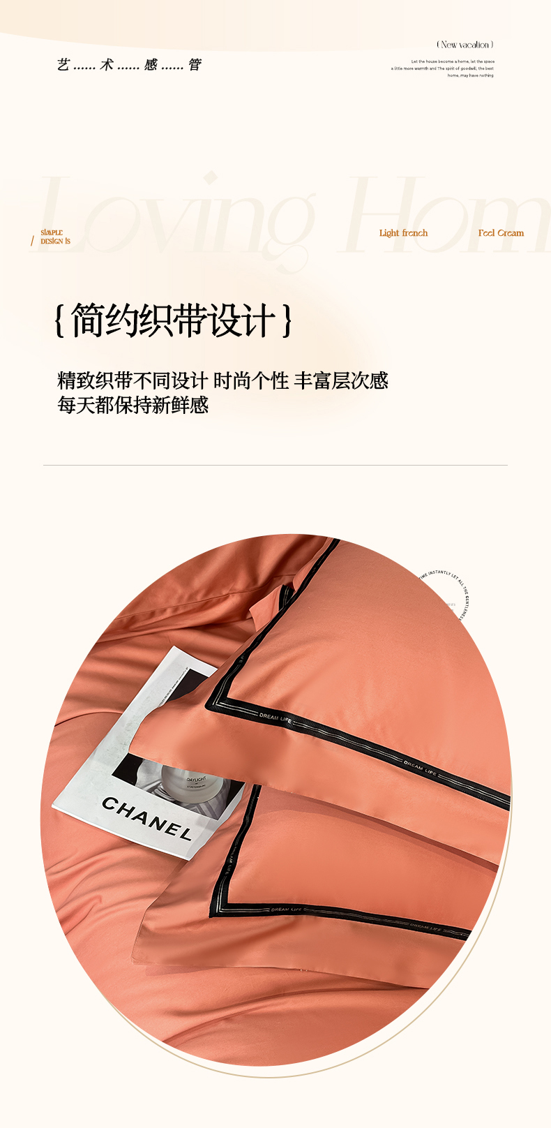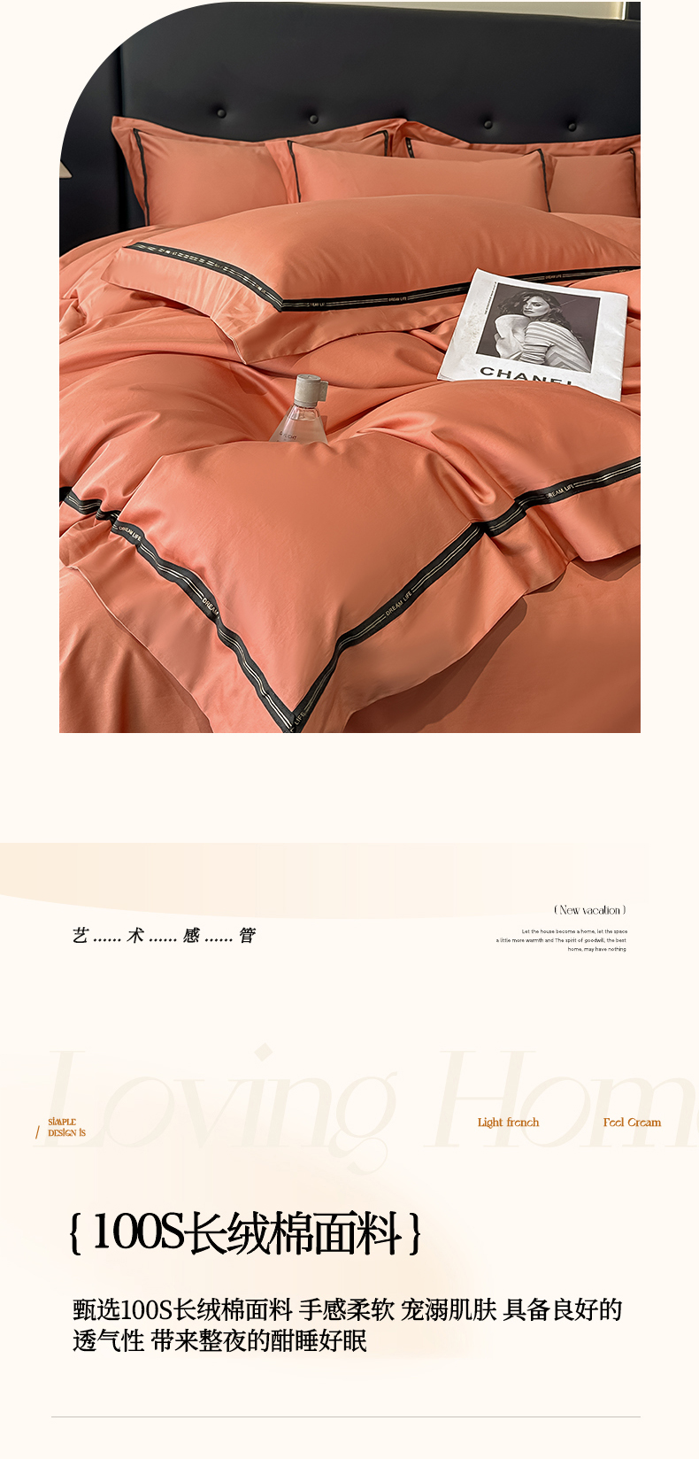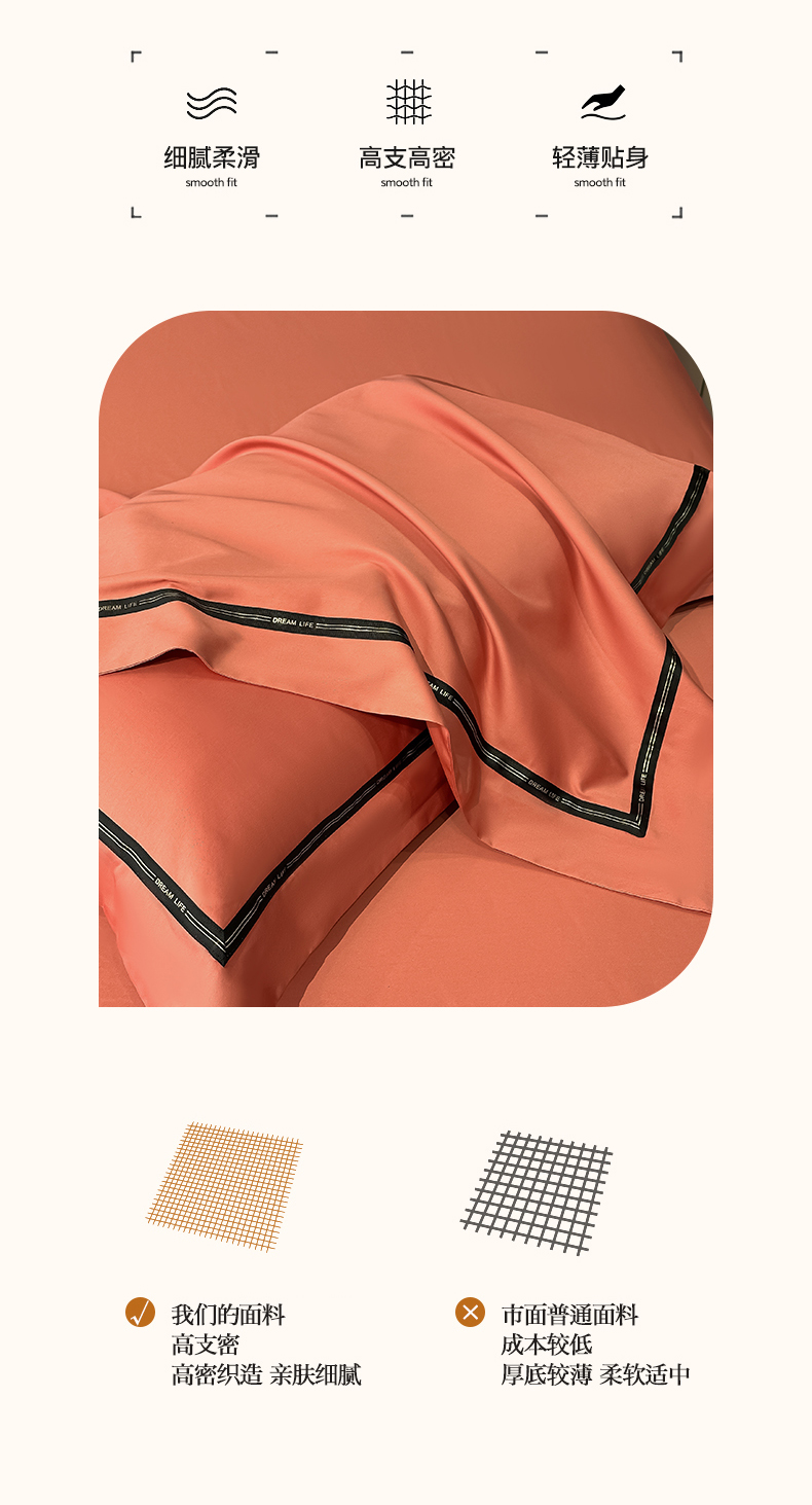魅都 2025新款100支长绒棉简约织带轻奢风四件套-罗伊 爱马橙