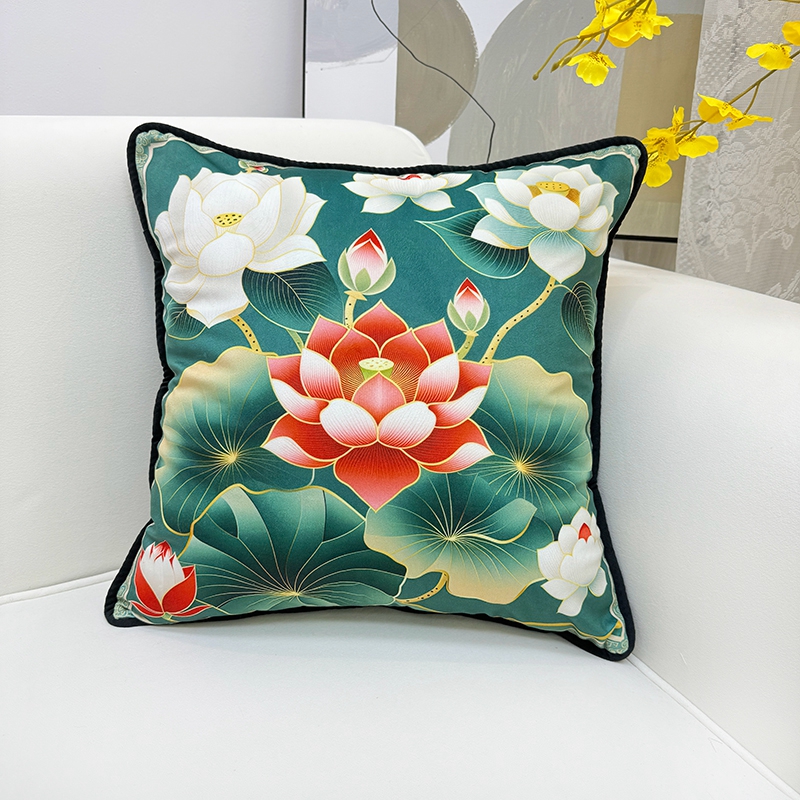 商品名称:爱家居 2025新款抱枕沙发新中式靠垫轻奢高级感靠枕床头大靠背正方形抱枕套卡通花卉 荷塘月色