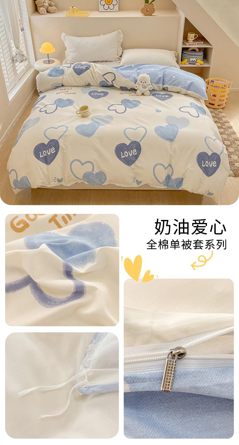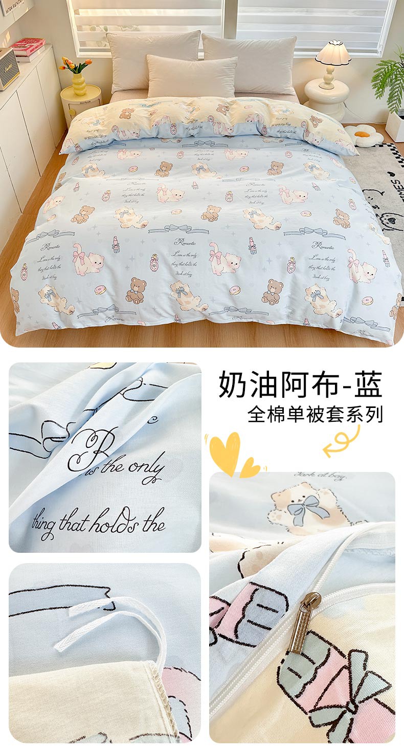 绵庭家纺 2025新款12868全棉套件单品系列二单被套 奶油阿布-蓝