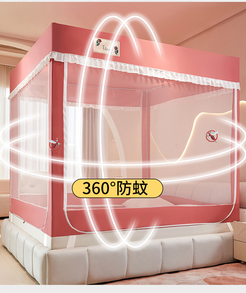 锦逸家居 2025新款坐床式防摔遮光蚊帐 微笑人生-遮光