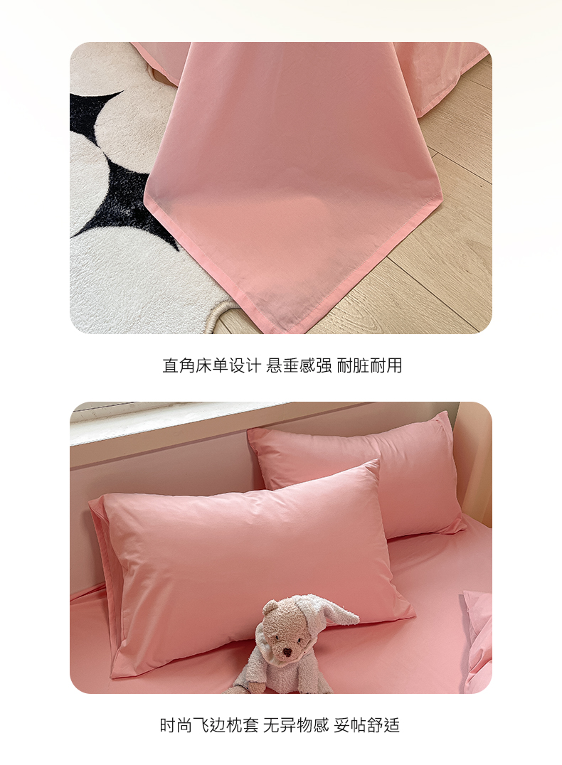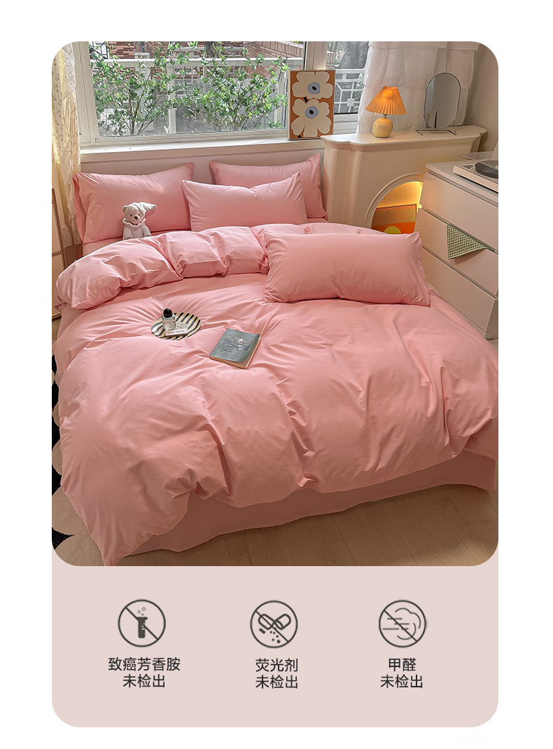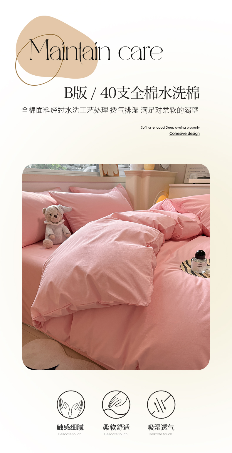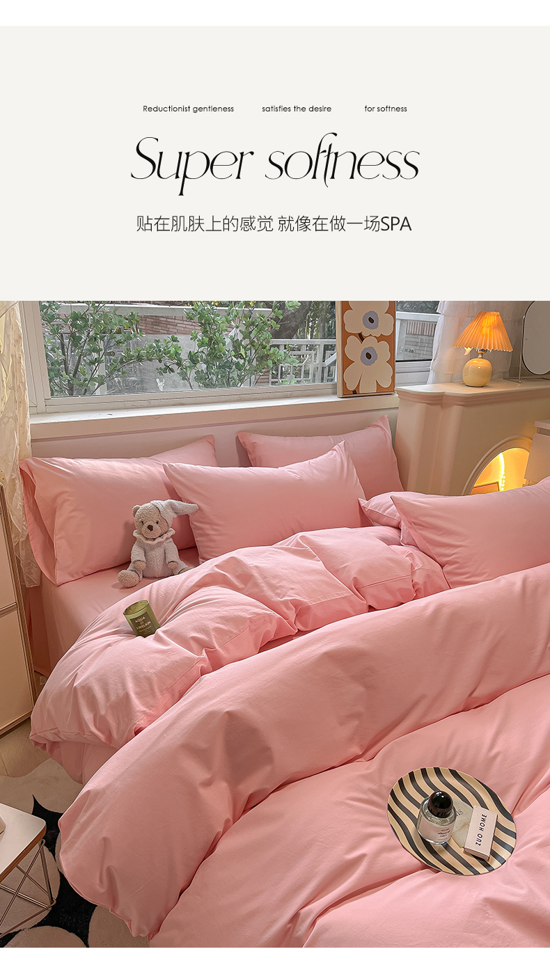 卡巴伦家纺 2025新款40支纯棉A类水洗棉四件套风格2 樱花粉