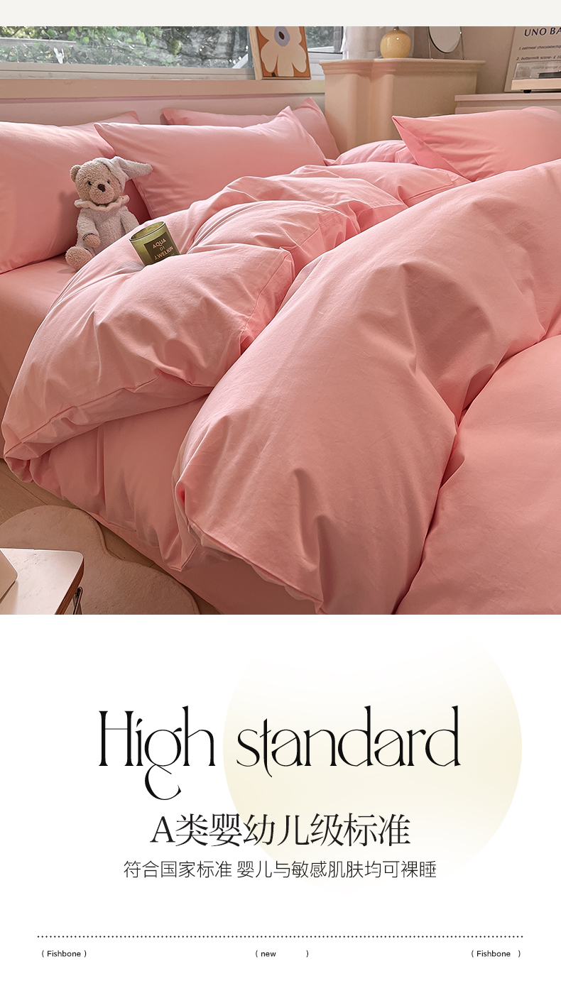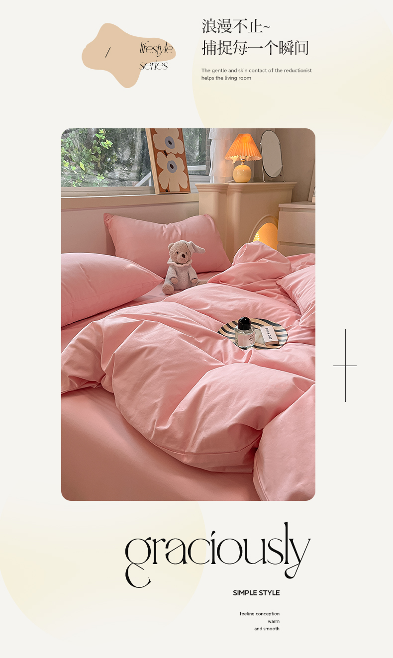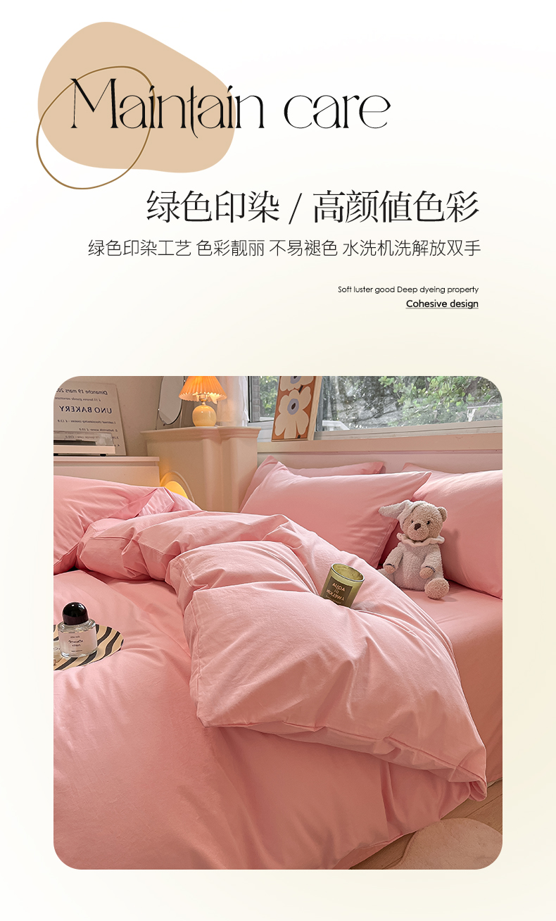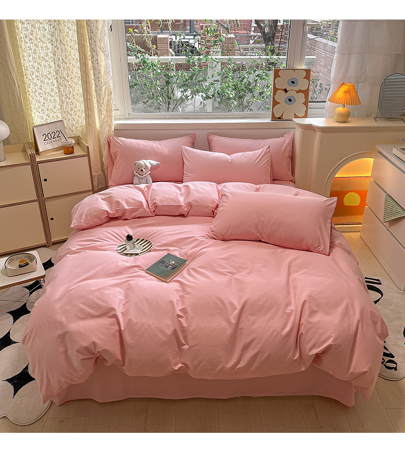 卡巴伦家纺 2025新款40支纯棉A类水洗棉四件套风格2 樱花粉