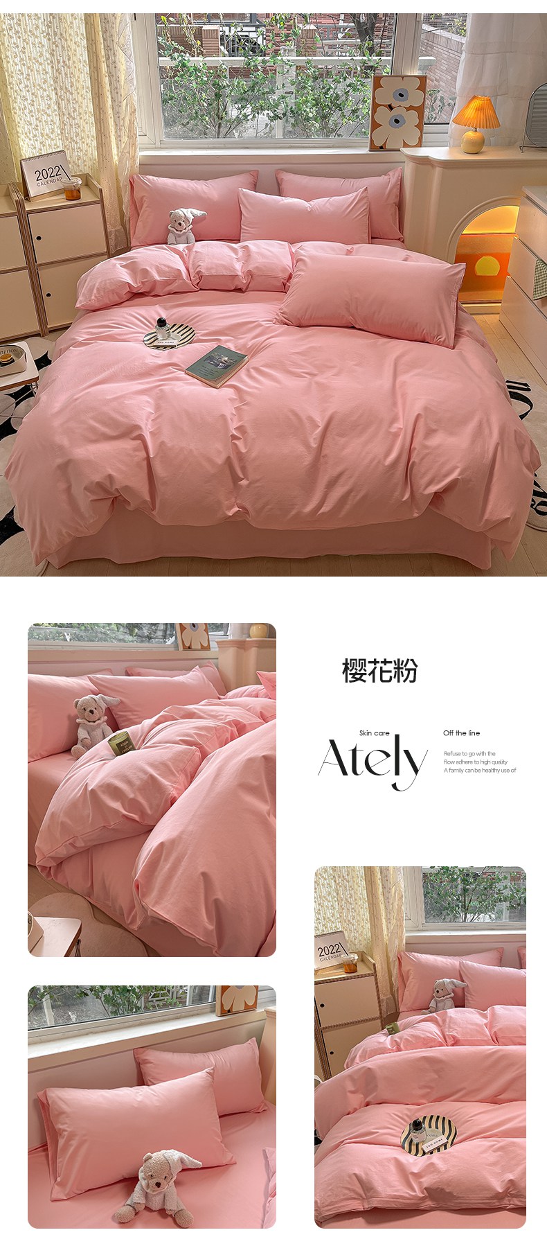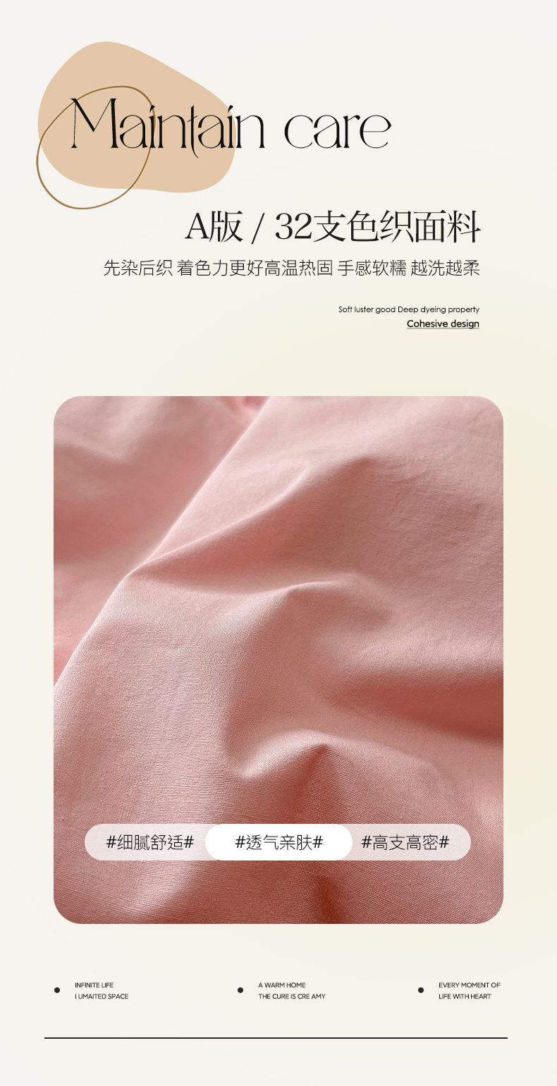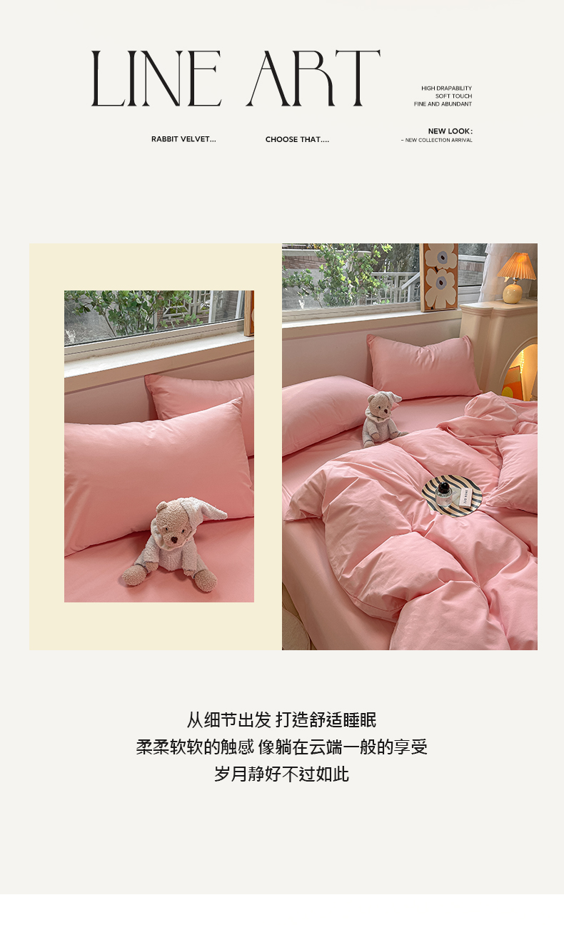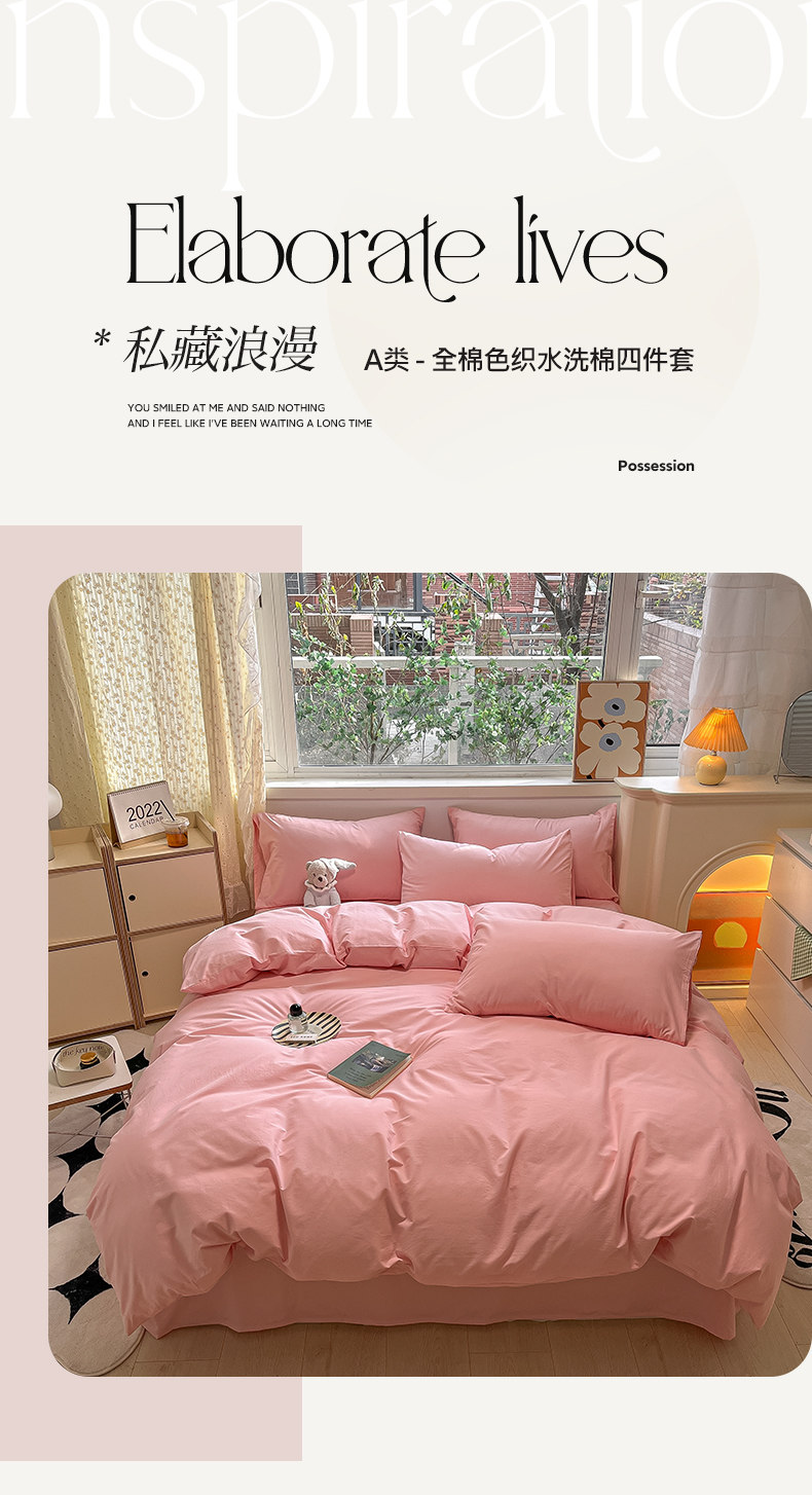 卡巴伦家纺 2025新款40支纯棉A类水洗棉四件套风格2 樱花粉