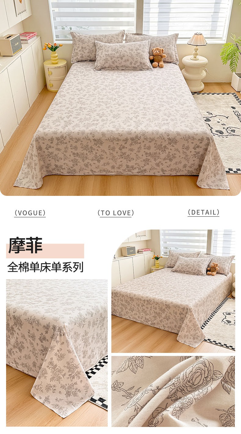 绵庭家纺 2025新款12868全棉套件单品系列二单床单 摩菲