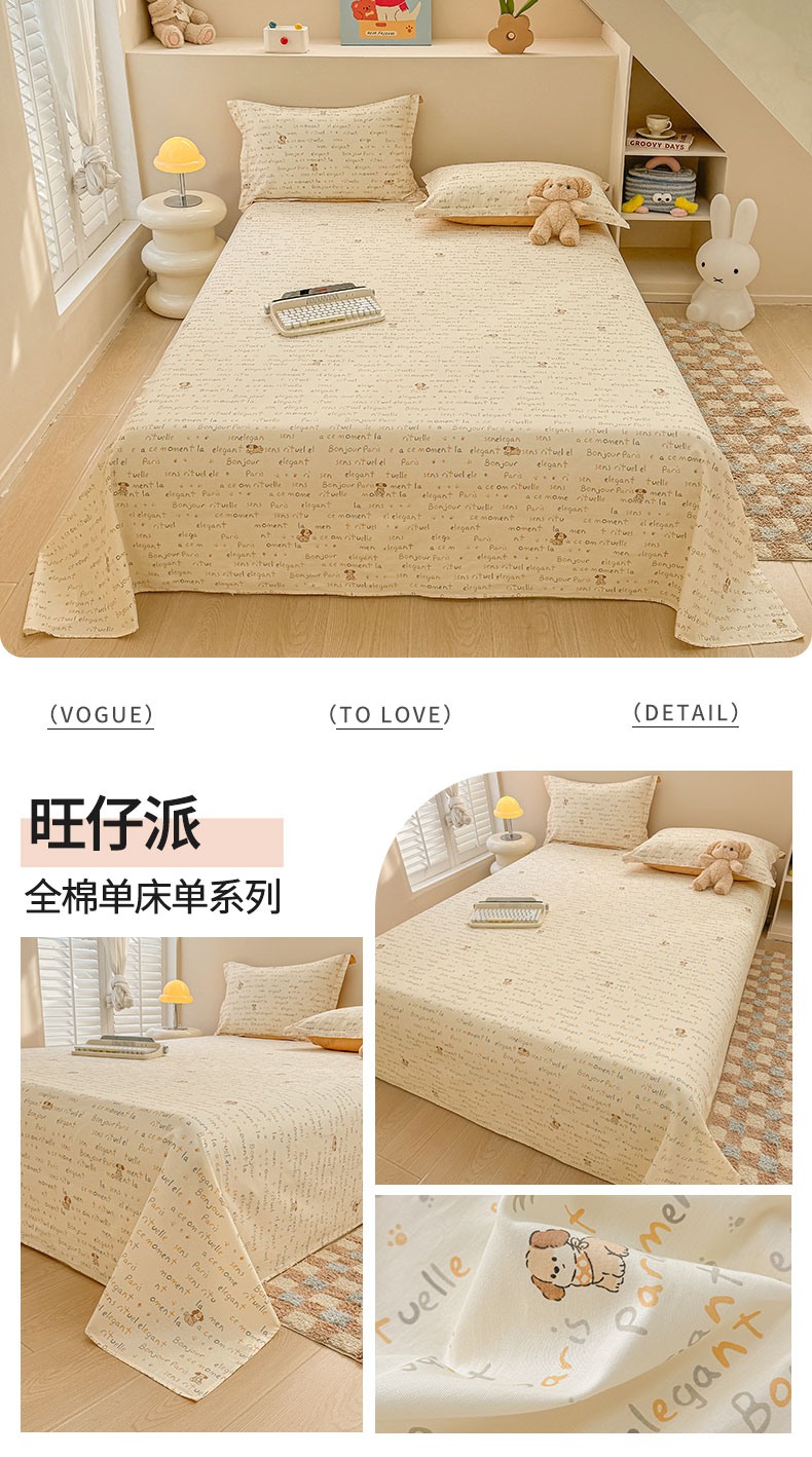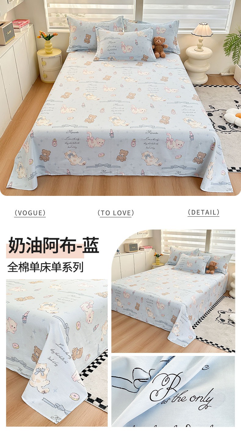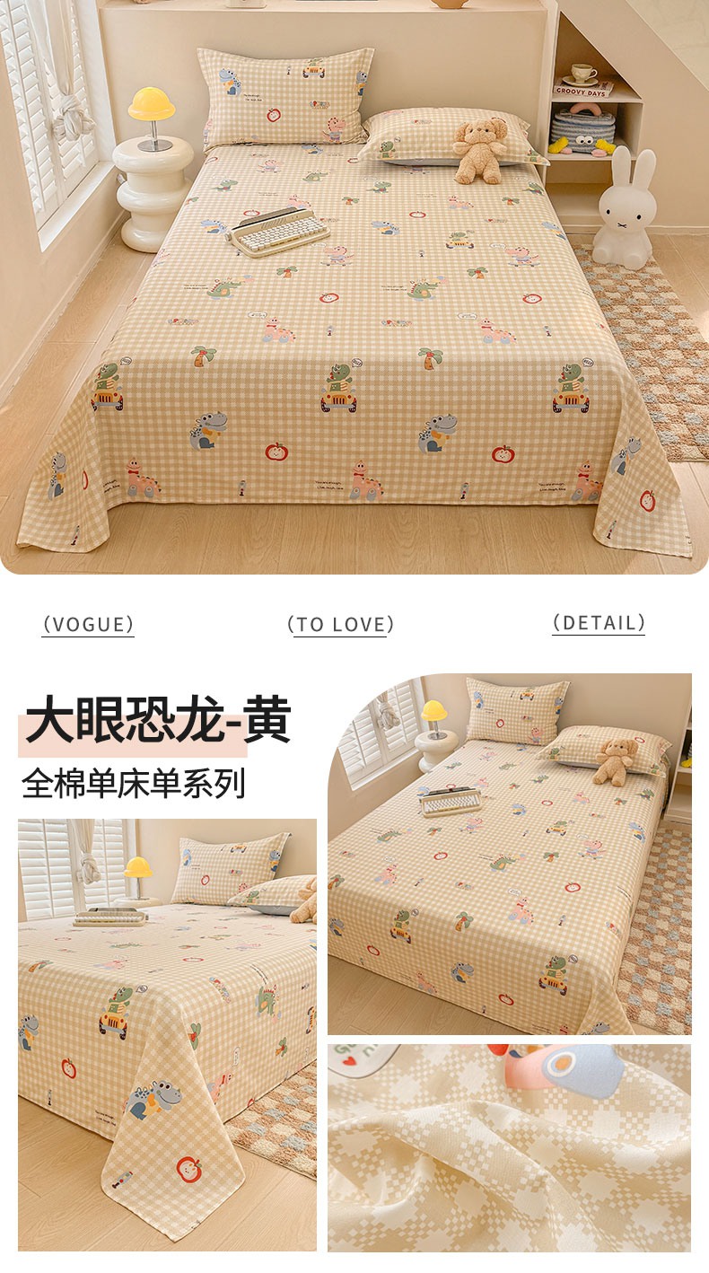 (总)绵庭家纺 2025新款12868全棉套件单品系列二单床单,艾茉莉-黄,霸王小恐龙,柏林梦境--绿,半岛情书,豹纹小熊,比利熊,彩虹喵,宠岛乐园,春风舞动,春日奇迹,大眼恐龙-黄,大眼恐龙-蓝,蒂芙娜-粉,粉桃之恋,风和韵雅,馥郁花开,格子熊仔-咖,花海甜宠,花希,花漾星辰,简若花镜,聚会狗狗,快乐追梦,懒萌潘达,摩菲,沐雅清风,奶油阿布-蓝,奶油爱心,暖阳绿意,奇异花朵,轻婉花语,清茶小熊-米,若薇,狮子乐园,苏夏觅影,太空旅行,甜心蜜趣,玩趣森林,旺仔派,温暖思绪,香颂蝶舞,雅国漫游-蓝,雅园漫游-紫,烟染秋色,叶伴花开,伊恋花韵,樱桃甜宠,樱姿-灰,优朵,月亮兔,云峰-绿