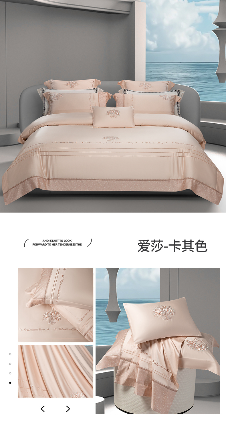 商品名称:高大尚婚庆馆 2025新款高端绣花四件套-艾莎 艾莎-卡其色