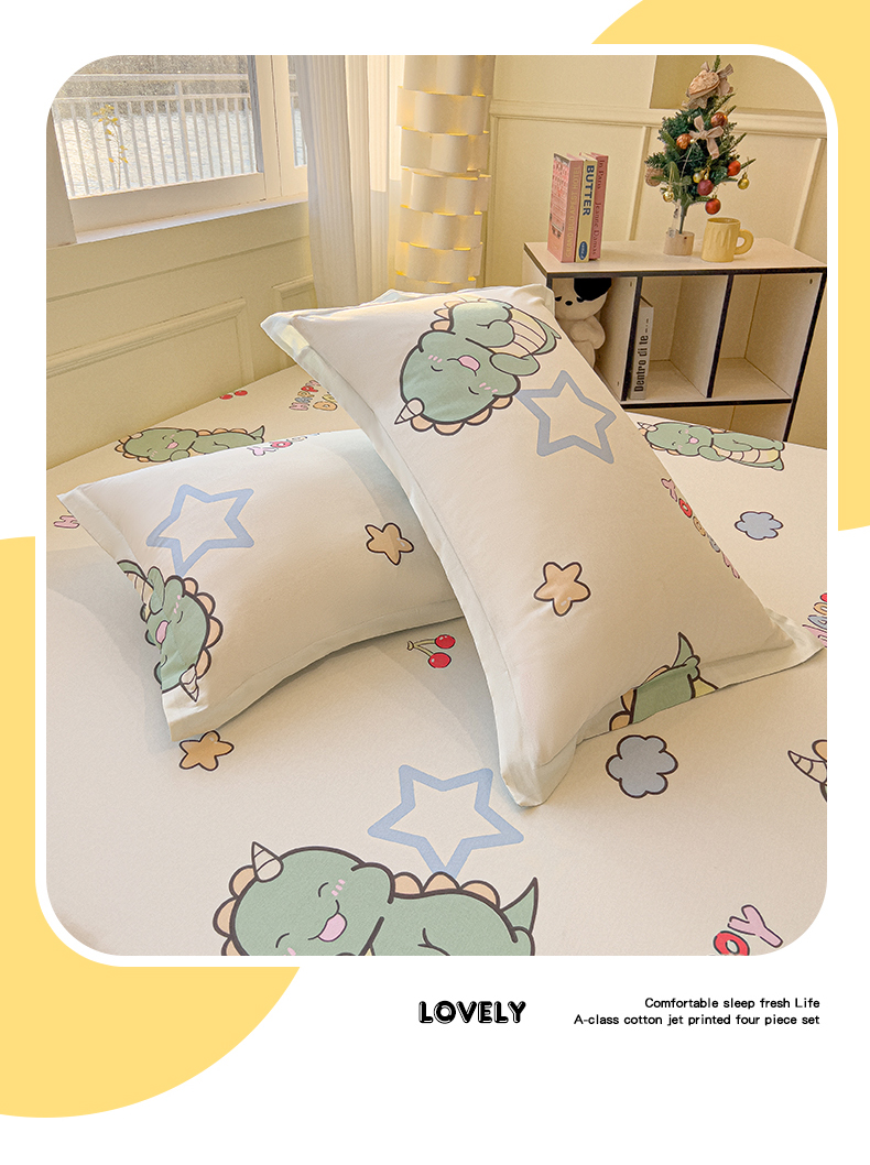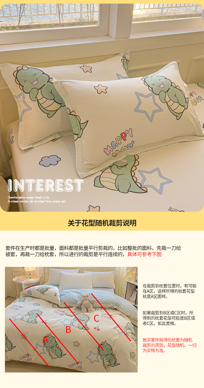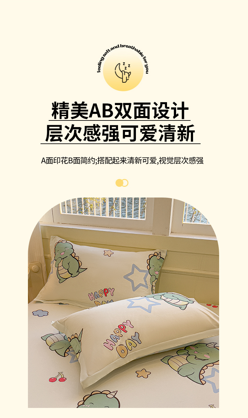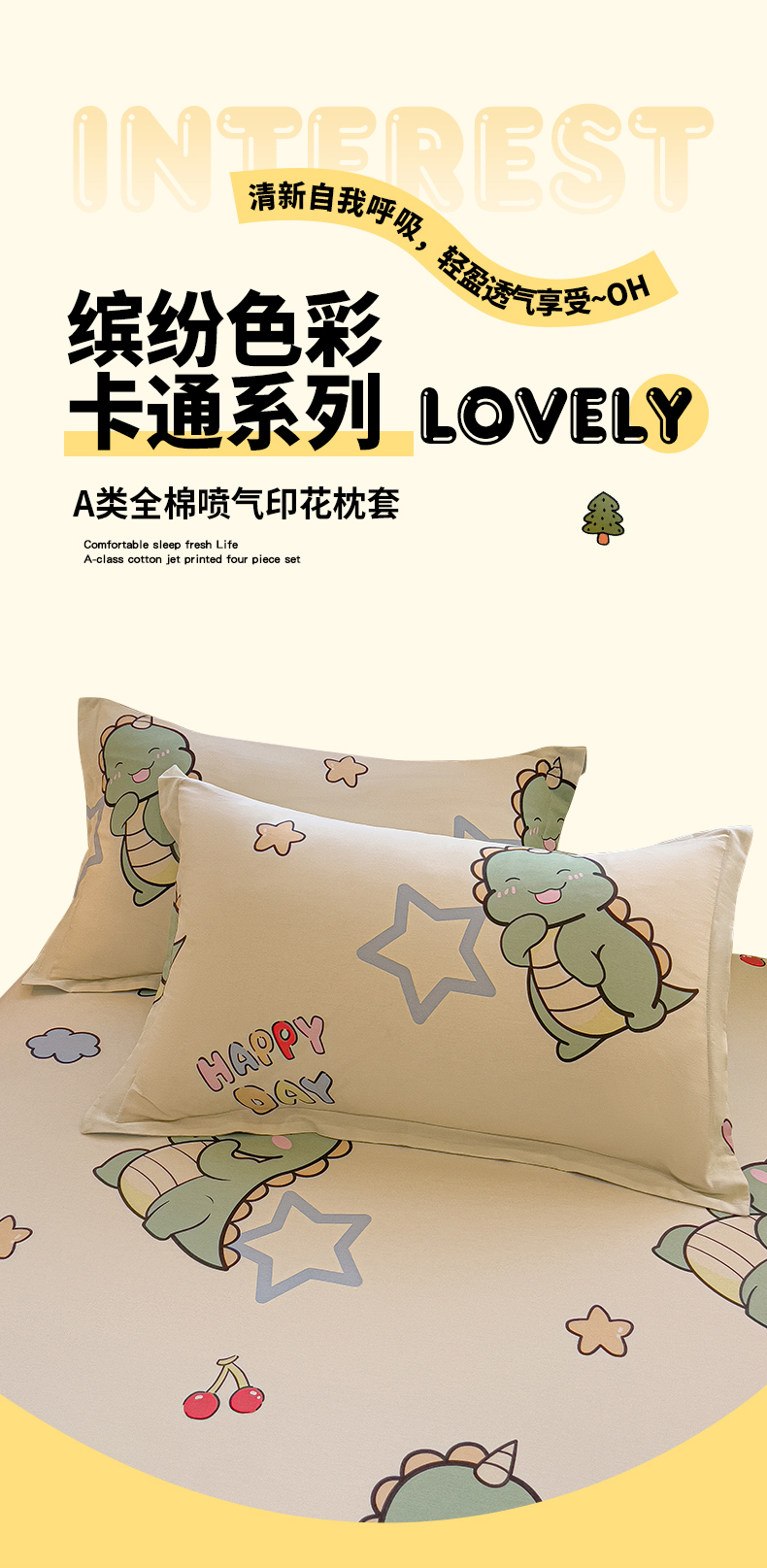 商品名称:拾物记 2025新款A类无荧光全喷气全棉12868单枕套 恐龙乐园