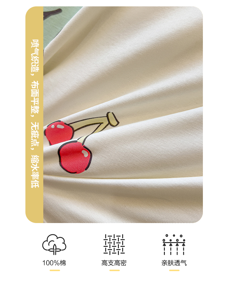 (总)拾物记 2023新款喷气全棉卡通小清新系列单被套,欢乐萌熊,奶油兔-红