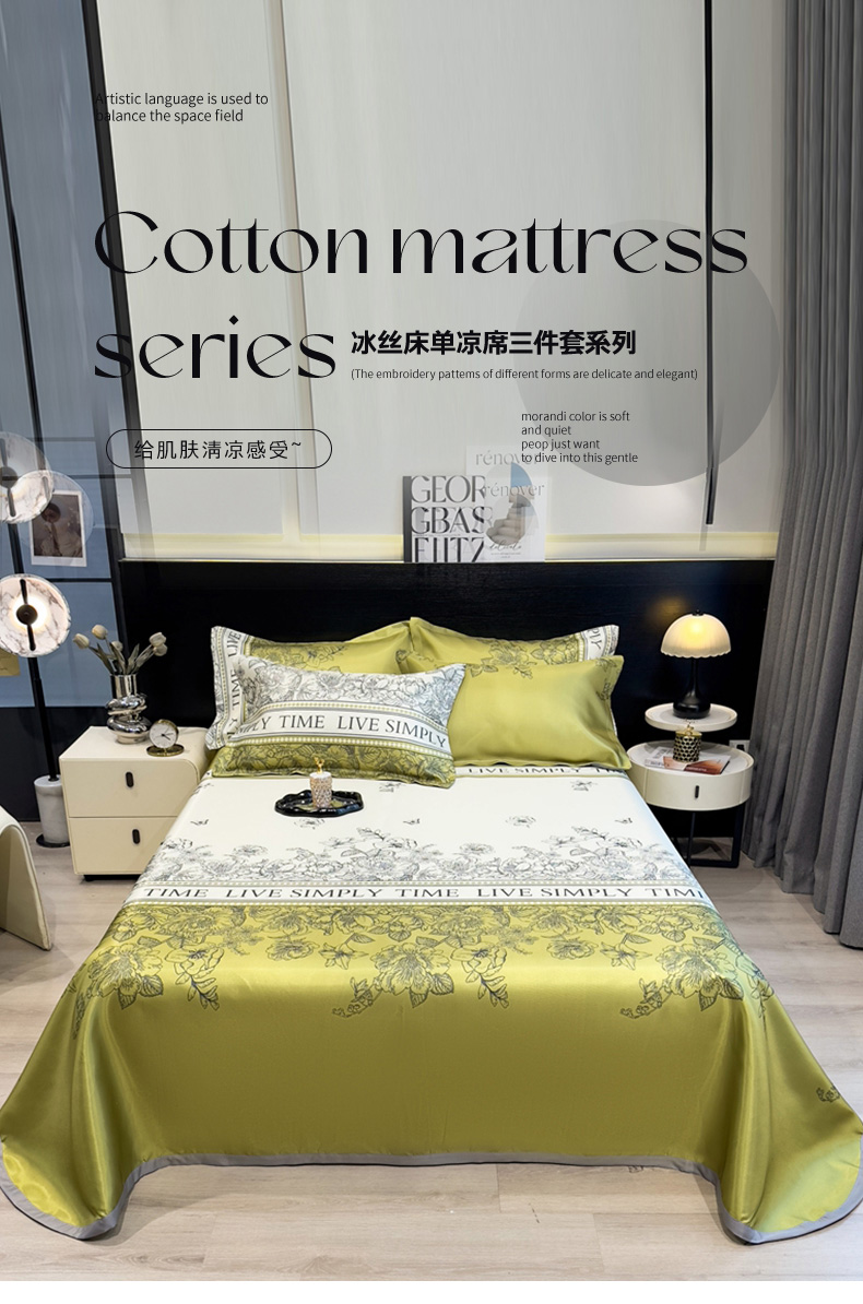 柏薇 2025新款冰丝床单款凉席三件套系列 绿玉薄荷