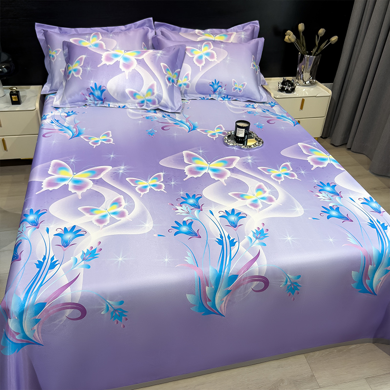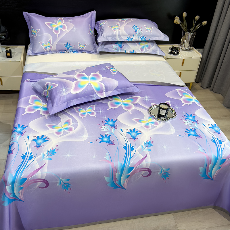 柏薇 2025新款冰丝床单款凉席三件套系列 紫色蝶海