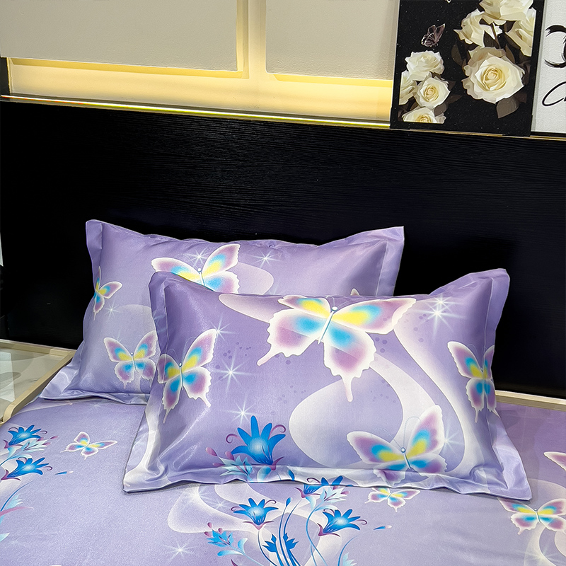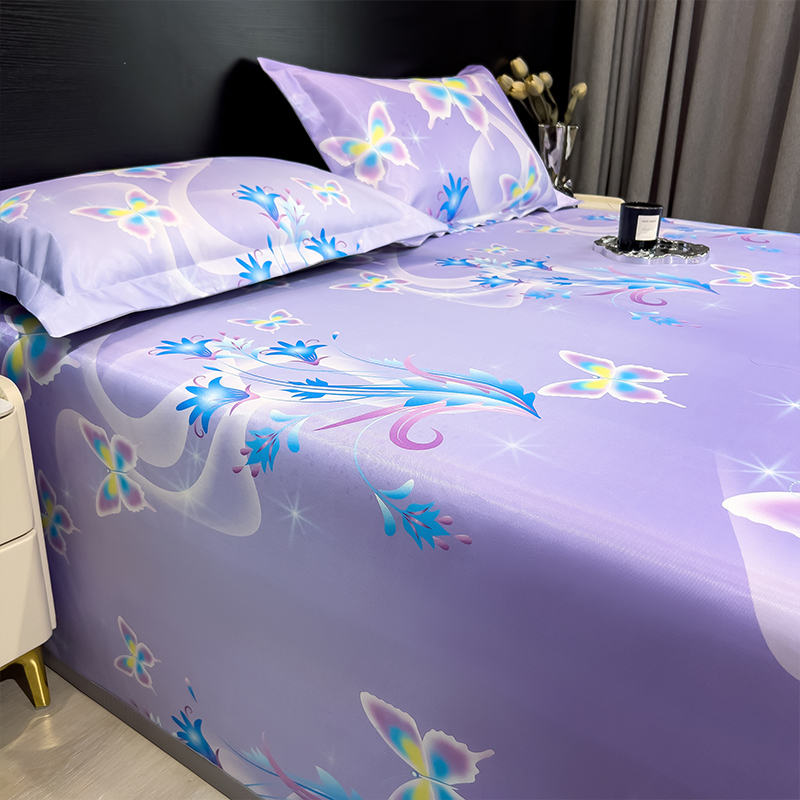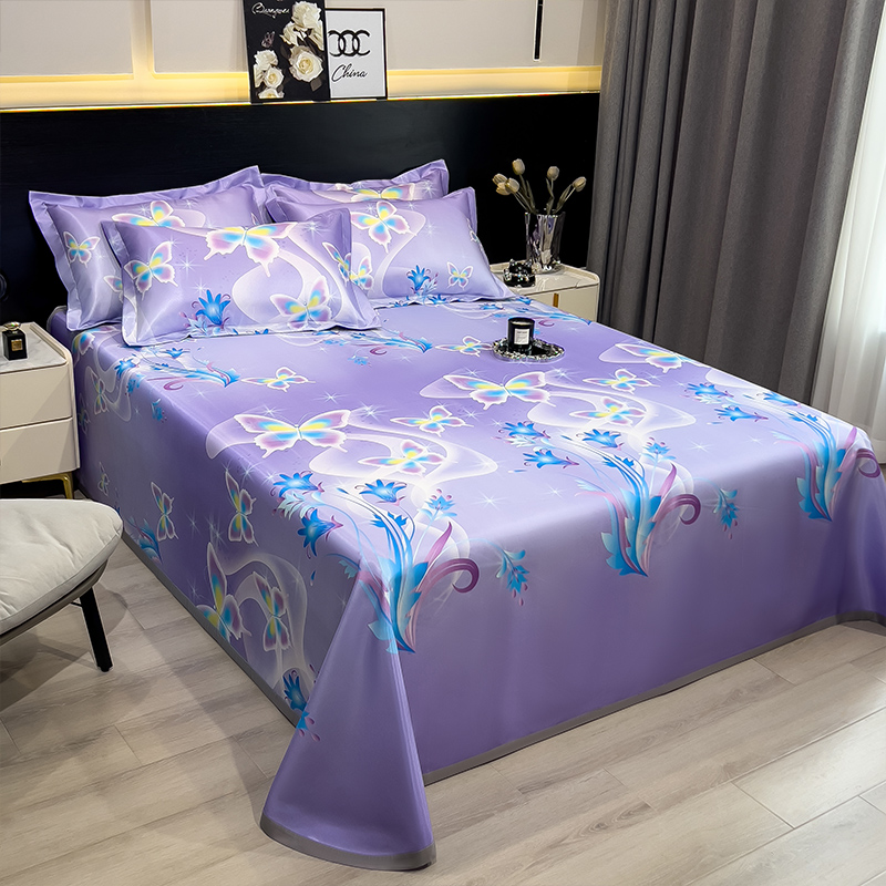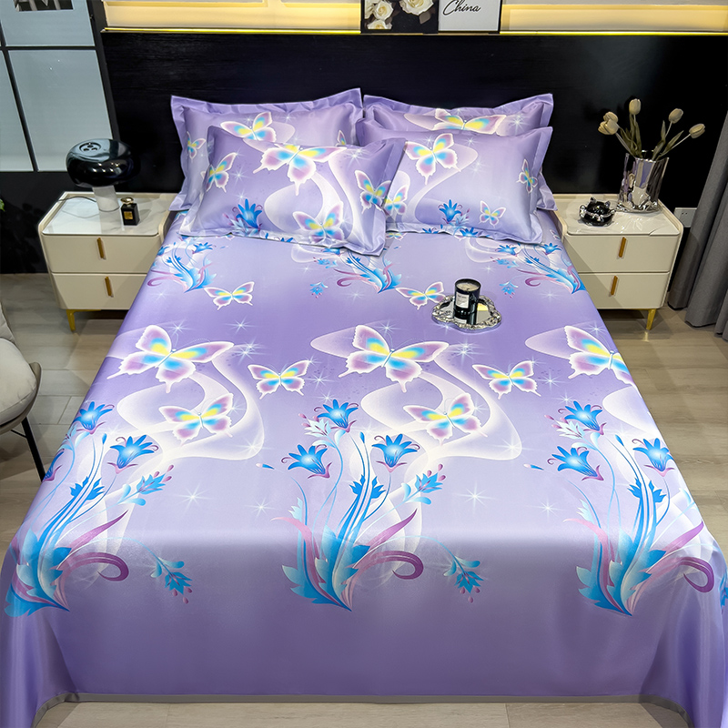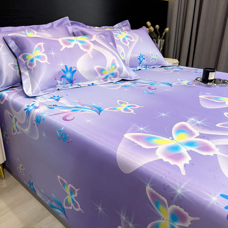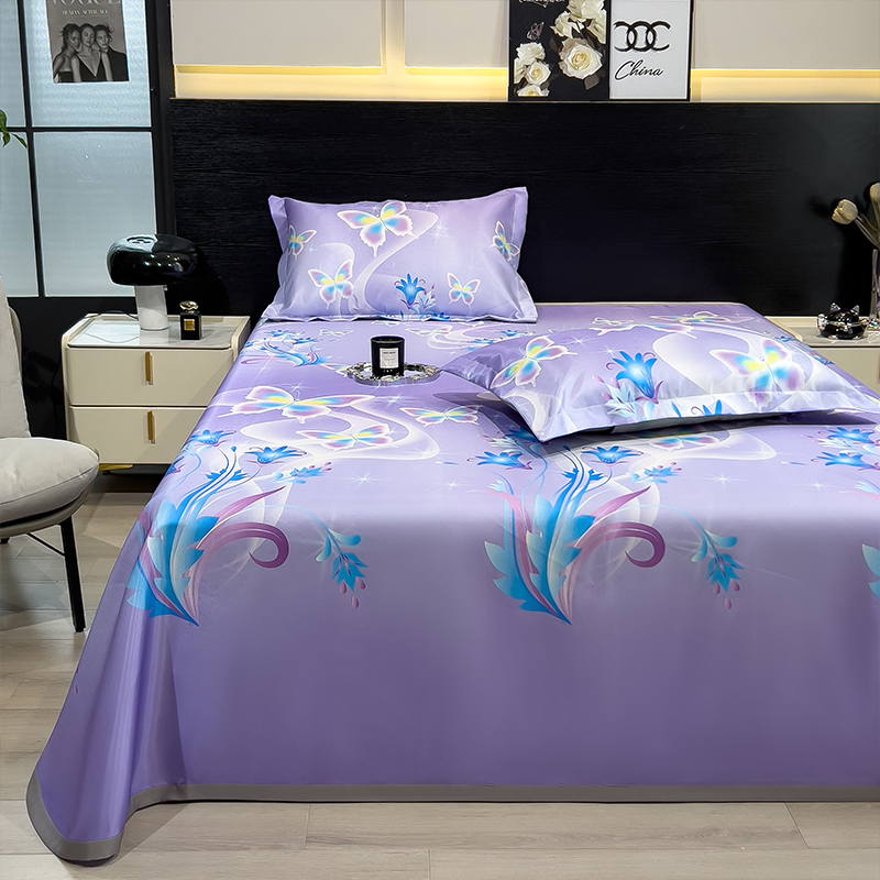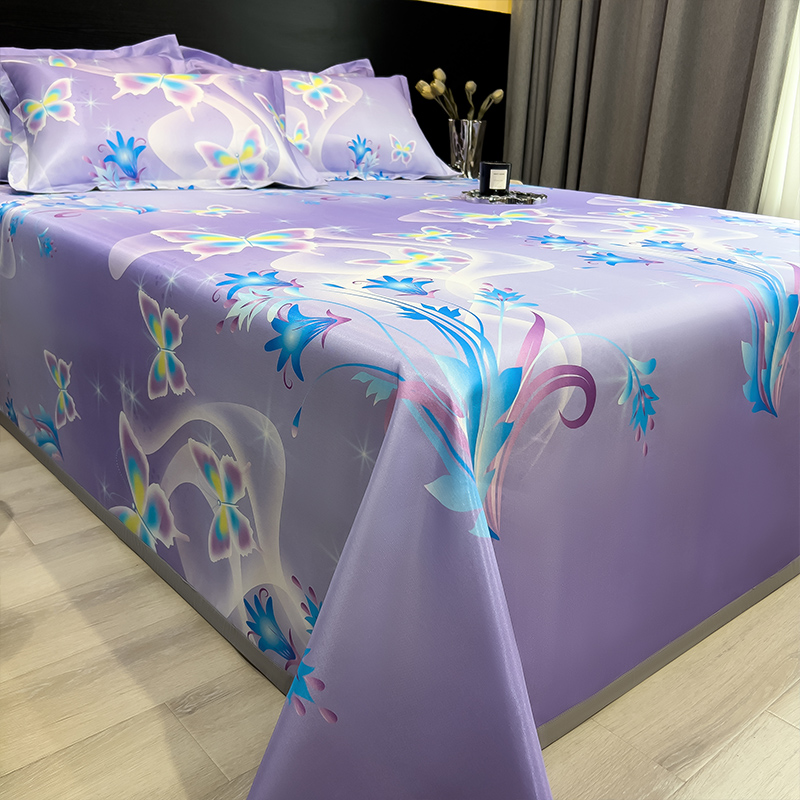 商品名称:柏薇 2025新款冰丝床单款凉席三件套系列 紫色蝶海